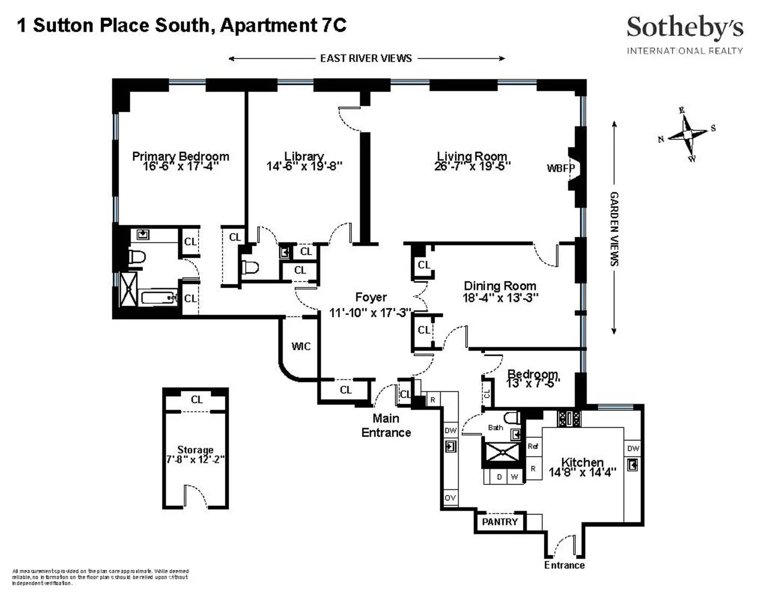 One Sutton Place South is a magnificent example of Candela’s superior and sophisticated talent. Architecturally exquisite, his gracious 1927 design features a grand triple-arched recessed porte-cochere and a tiered riverfront private garden. One of Manhattan’s most celebrated and sought-after addresses, the cooperative building amenities include a state-of-the-art fitness center, access to its glorious private garden, and dedicated private storage. Impeccable service includes full-time doormen and a resident manager. Pets are welcomed.