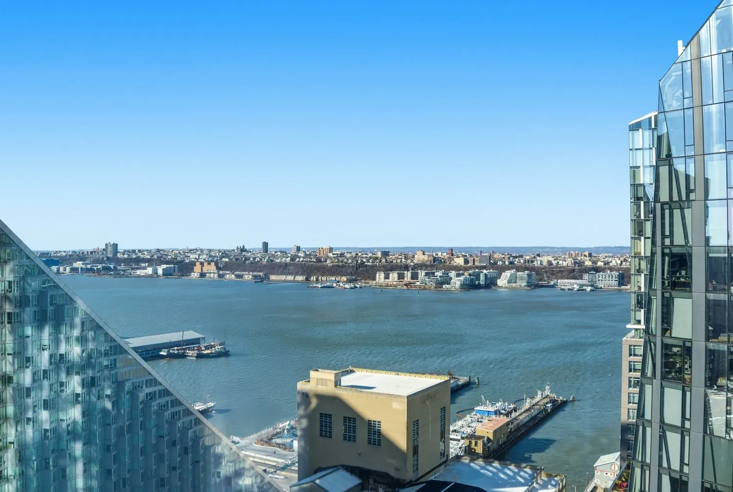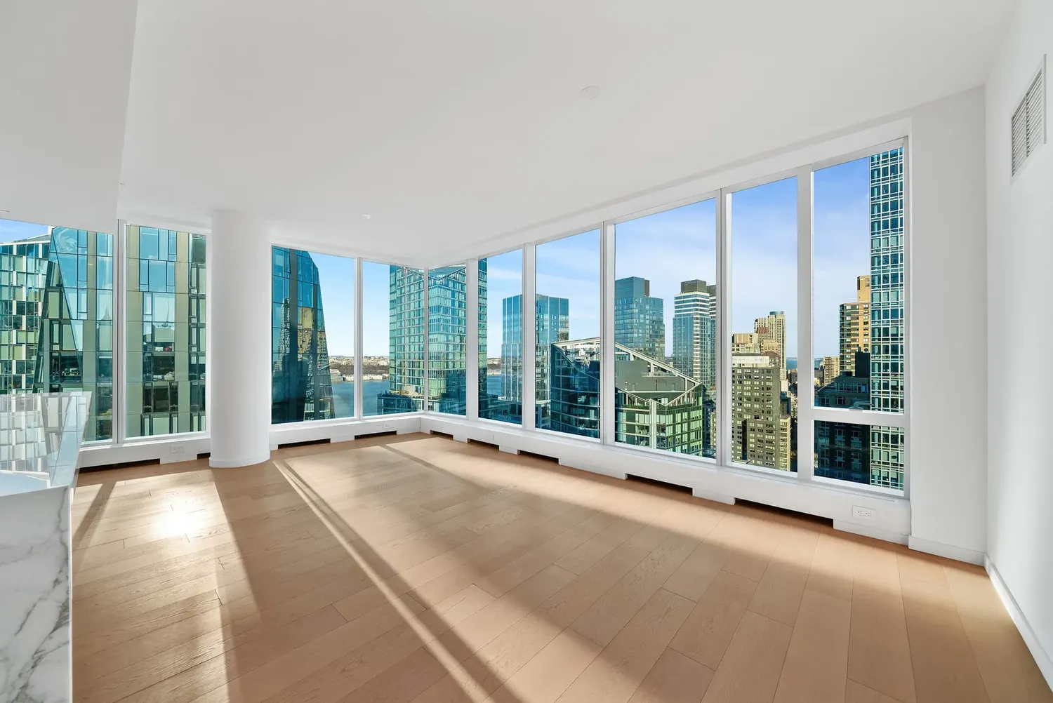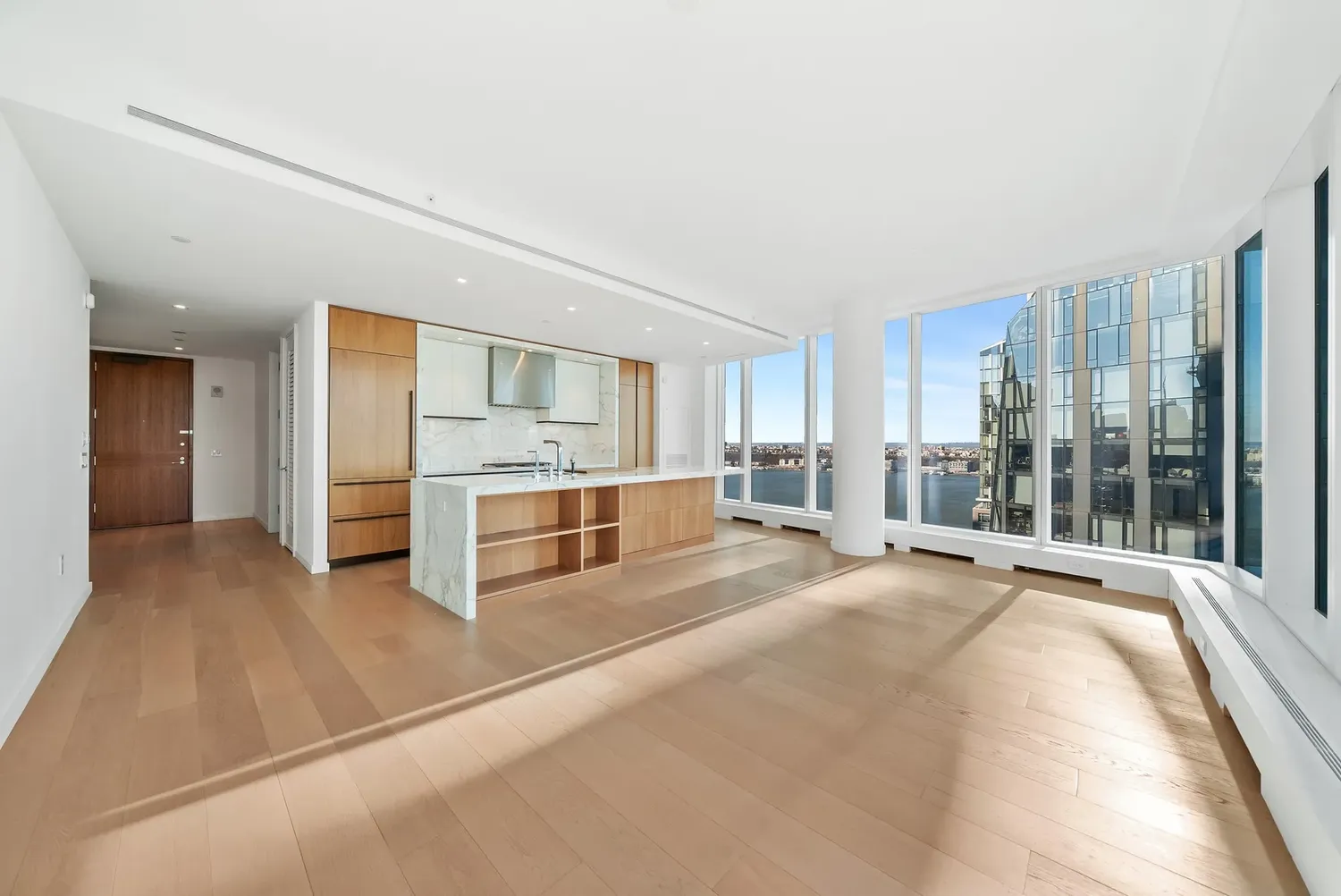 NEW to Μarket — a pristine corner 2BR / 2.5BA with panoramic Hudson River + City + George Washington Bridge views , wrapped in dramatic floor-to-ceiling glass and anchored by a Jeffrey Beers designed Scavolini kitchen — all within the full-service, amenity-rich lifestyle of One West End! Tax benefit: One West End currently enjoys a 20-year 421-a real estate tax exemption , expiring 2038/2039 . THE RESIDENCE Arrive through an elegant walnut entry door into a gracious foyer that sets the tone. A striking powder room makes a perfect first impression with Eramosa marble floors and a Calacatta Fabricotti floating stone vanity with carved stone sink. Practicality is seamless: a deep coat closet and in-unit washer/dryer are discreetly tucked nearby. The expansive corner living and dining space is the showpiece — bright Northern and Western light pours through floor-to-ceiling windows, framing sweeping river and bridge vistas day and night. The open chef’s kitchen is both sculptural and functional, featuring white oak finished walnut cabinetry , Vagli Fine Vein marble countertops and marble backsplash, a large sink with Dornbracht fixtures, built-in water filtration, and a full suite of top-tier appliances: Wolf 5-burner gas range + oven, Sub-Zero refrigerator/freezer, Gaggenau wine fridge, Wolf microwave, and Miele dishwasher . The primary suite is a true retreat with river views, a private entry foyer, a fully outfitted walk-in closet plus an additional deep closet, and a serene five-fixture bath finished at a spa level heated Bianco Dolomiti marble floors , brushed limestone walls, marble slab counters, a deep Zuma soaking tub , glass-enclosed rain shower, recessed LED-lit medicine cabinets, and Dornbracht fittings throughout. The second bedroom is equally elevated with a double closet and its own en-suite bath wrapped in Opal white marble with a floating custom-stained oak vanity, Lacava countertop, and a glass-enclosed tub/shower with seamless door—again finished with Dornbracht fixtures. Additional highlights include wide-plank white oak floors , an in-unit washer and dryer, central air and year-round zoned climate control provided by a four-pipe fan coil HVAC system. THE BUILDING One West End is a striking 42-story glass condominium by Pelli Clarke Pelli , offering a truly resort-caliber amenity collection: 24-hour doorman and concierge , a 75-foot swimming pool , state-of-the-art fitness center and spa, and an extraordinary 12,000 SF landscaped terrace with cabanas, grilling stations, and private outdoor entertaining areas. Residents also enjoy a grand living room, media and game rooms, billiards lounge, dining room with chef’s kitchen, and a children’s playroom opening to a private garden terrace. THE NEIGHBORHOOD The location is prime; the building is situated across the street from Riverside Park. It offers quick and easy access to the new Waterline Square, Vin Sur Vingt Wine Bar, Starbucks, Peperino Pizza, Morton Williams, Pier I, The Boat Basin, dog run and playground & more. You'll be steps away from Lincoln Center, Columbus Circle, Central Park, many shopping and restaurants options, and everything else the Upper West Side has to offer. In addition, residents have easy access to public transportation: a shuttle bus will bring you to the closest express subway on 72nd Street for the 1, 2, & 3 trains or multiple subway lines on Columbus Circle. The crosstown 72nd Street bus picks up two blocks away on Riverside Boulevard and 66th Street.
