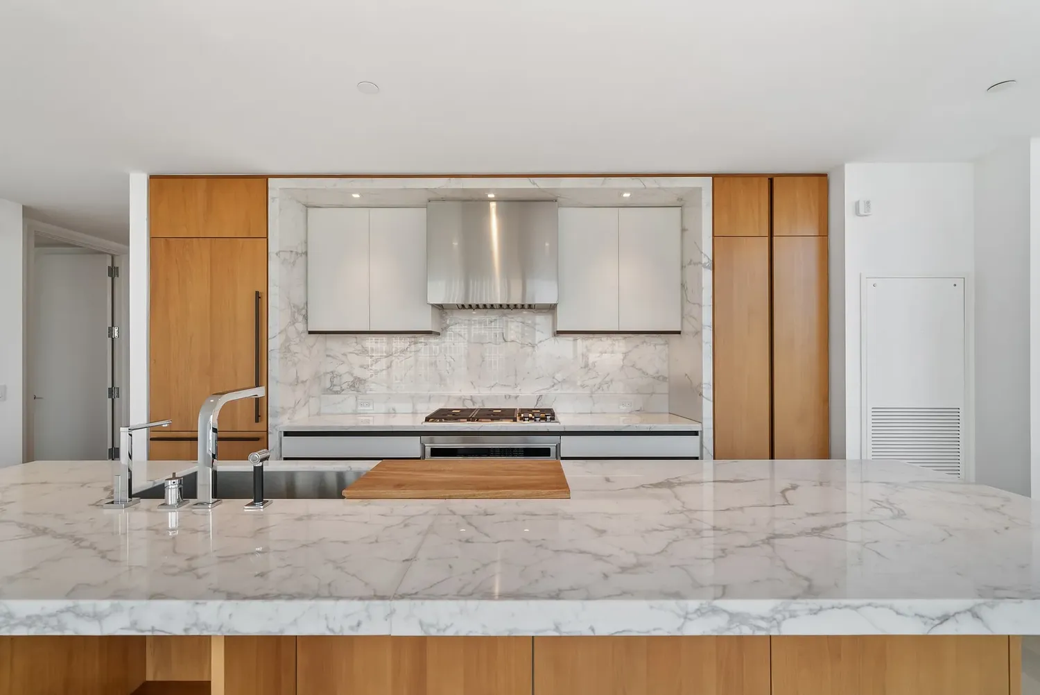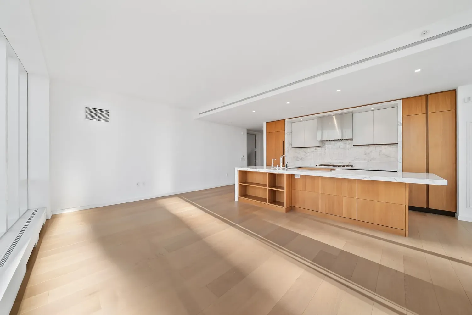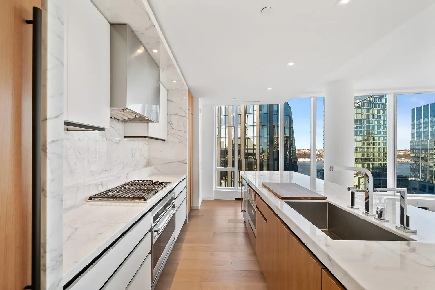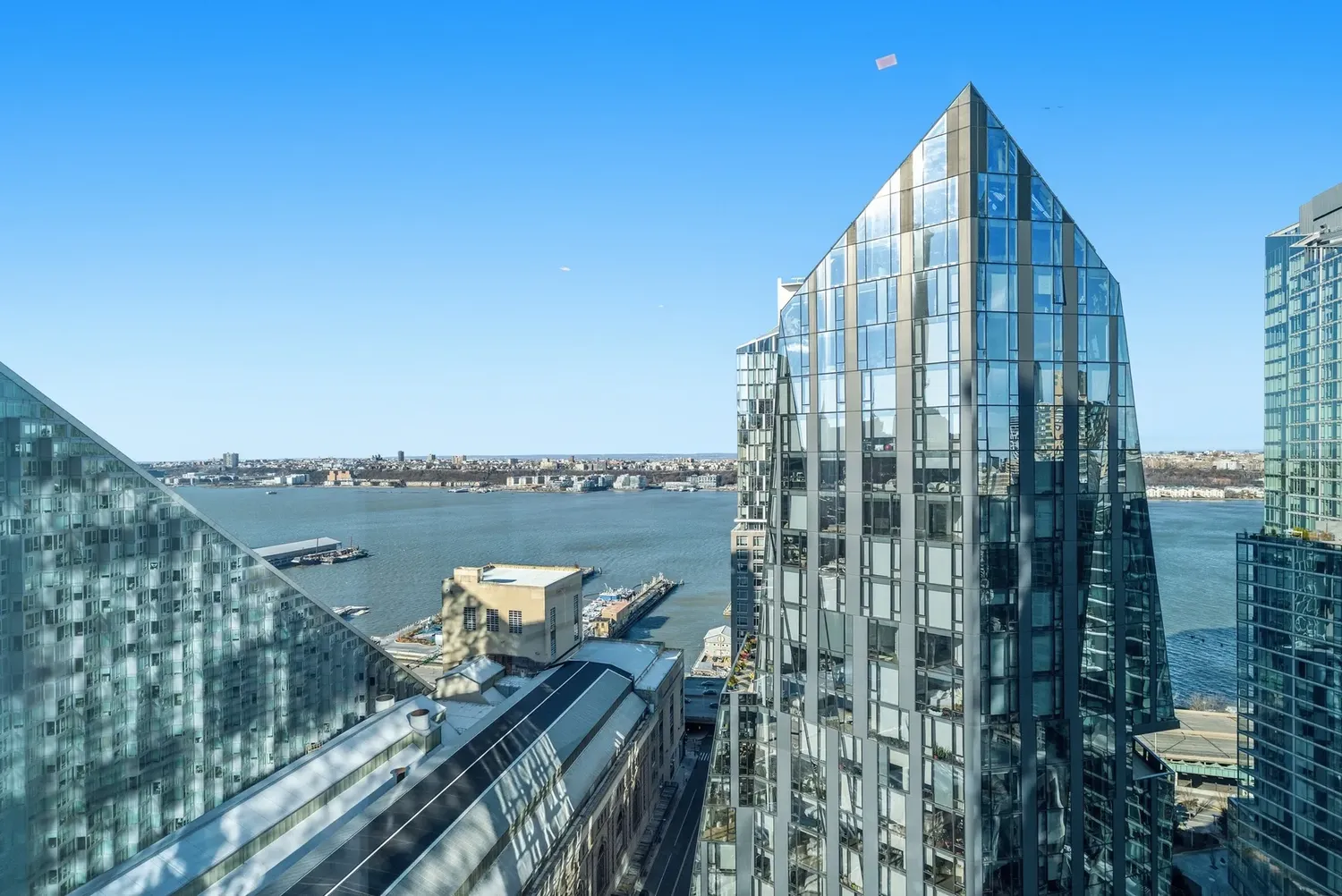 NEW to Μarket — a pristine corner 2BR / 2.5BA with panoramic Hudson River + City + George Washington Bridge views , wrapped in dramatic floor-to-ceiling glass and anchored by a Jeffrey Beers designed Scavolini kitchen — all within the full-service, amenity-rich lifestyle of One West End! Tax benefit: One West End currently enjoys a 20-year 421-a real estate tax exemption , expiring 2038/2039 . THE RESIDENCE Arrive through an elegant walnut entry door into a gracious foyer that sets the tone. A striking powder room makes a perfect first impression with Eramosa marble floors and a Calacatta Fabricotti floating stone vanity with carved stone sink. Practicality is seamless: a deep coat closet and in-unit washer/dryer are discreetly tucked nearby. The expansive corner living and dining space is the showpiece — bright Northern and Western light pours through floor-to-ceiling windows, framing sweeping river and bridge vistas day and night. The open chef’s kitchen is both sculptural and functional, featuring white oak finished walnut cabinetry , Vagli Fine Vein marble countertops and marble backsplash, a large sink with Dornbracht fixtures, built-in water filtration, and a full suite of top-tier appliances: Wolf 5-burner gas range + oven, Sub-Zero refrigerator/freezer, Gaggenau wine fridge, Wolf microwave, and Miele dishwasher . The primary suite is a true retreat with river views, a private entry foyer, a fully outfitted walk-in closet plus an additional deep closet, and a serene five-fixture bath finished at a spa level heated Bianco Dolomiti marble floors , brushed limestone walls, marble slab counters, a deep Zuma soaking tub , glass-enclosed rain shower, recessed LED-lit medicine cabinets, and Dornbracht fittings throughout. The second bedroom is equally elevated with a double closet and its own en-suite bath wrapped in Opal white marble with a floating custom-stained oak vanity, Lacava countertop, and a glass-enclosed tub/shower with seamless door—again finished with Dornbracht fixtures. Additional highlights include wide-plank white oak floors , an in-unit washer and dryer, central air and year-round zoned climate control provided by a four-pipe fan coil HVAC system. THE BUILDING One West End is a striking 42-story glass condominium by Pelli Clarke Pelli , offering a truly resort-caliber amenity collection: 24-hour doorman and concierge , a 75-foot swimming pool , state-of-the-art fitness center and spa, and an extraordinary 12,000 SF landscaped terrace with cabanas, grilling stations, and private outdoor entertaining areas. Residents also enjoy a grand living room, media and game rooms, billiards lounge, dining room with chef’s kitchen, and a children’s playroom opening to a private garden terrace. THE NEIGHBORHOOD The location is prime; the building is situated across the street from Riverside Park. It offers quick and easy access to the new Waterline Square, Vin Sur Vingt Wine Bar, Starbucks, Peperino Pizza, Morton Williams, Pier I, The Boat Basin, dog run and playground & more. You'll be steps away from Lincoln Center, Columbus Circle, Central Park, many shopping and restaurants options, and everything else the Upper West Side has to offer. In addition, residents have easy access to public transportation: a shuttle bus will bring you to the closest express subway on 72nd Street for the 1, 2, & 3 trains or multiple subway lines on Columbus Circle. The crosstown 72nd Street bus picks up two blocks away on Riverside Boulevard and 66th Street.