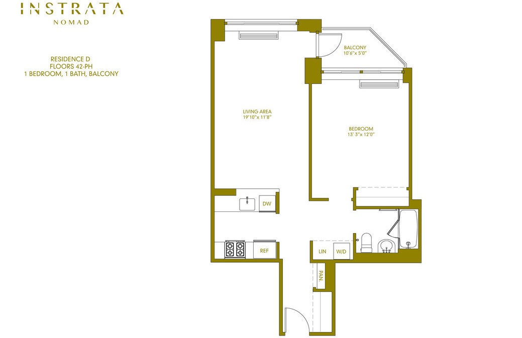 .Soaring above historic Madison Square Park, Instrata Nomad is a 50-story residential rental high-rise exuding sophistication and luxury from the inside out. The building is designed to accentuate the thrills of New York City living. Studio, one, two and three bedroom apartments all feature a number of gorgeous finishes and convenient amenities. Each home is equipped with stainless steel appliances, granite countertops, Kohler fixtures, hardwood floors, marble bathrooms, and sizable closet space. Balconies are found off many of the 392 apartments, providing room to soak up the scenic city landscape, enjoy a breath of fresh air, and take a break once in a while.