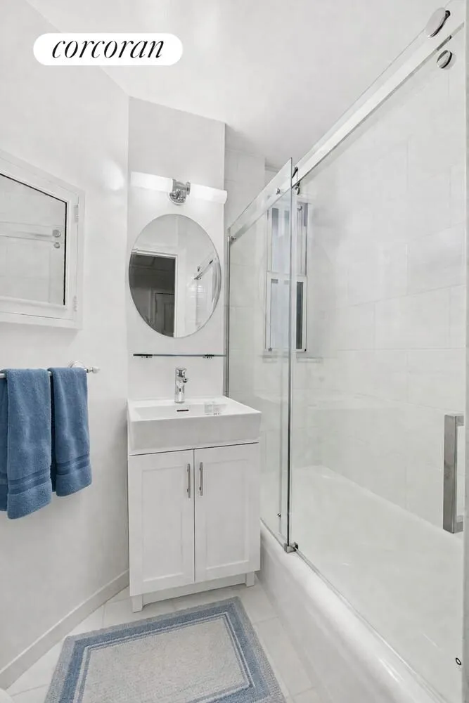 - Bathroom: Updated with Brazilian wall tiles, porcelain floor tiles, and a contemporary Italian sink. It features a frameless double-sliding glass shower door and Symmons shower body.