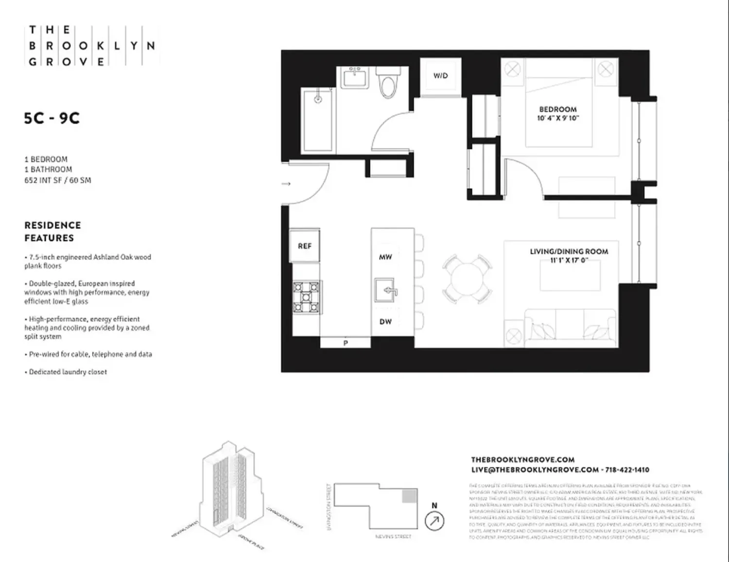 The Brooklyn Grove is a full-service luxury condominium with a beautifully appointed attended lobby. Residents enjoy an impressive suite of amenities, including a lounge with soaring ceilings, fireplace, pool table, and screening room. The expansive rooftop offers both indoor and outdoor dining areas with BBQ grills, while a private dining room with kitchenette is available for special occasions. The Wellness Wing features a fully equipped fitness center, yoga studio, and a stunning 40-foot indoor swimming pool. Additional conveniences include on-site parking, a children’s playroom, a pet spa, cold storage and a package room in the lobby, bike storage, and additional private storage units.