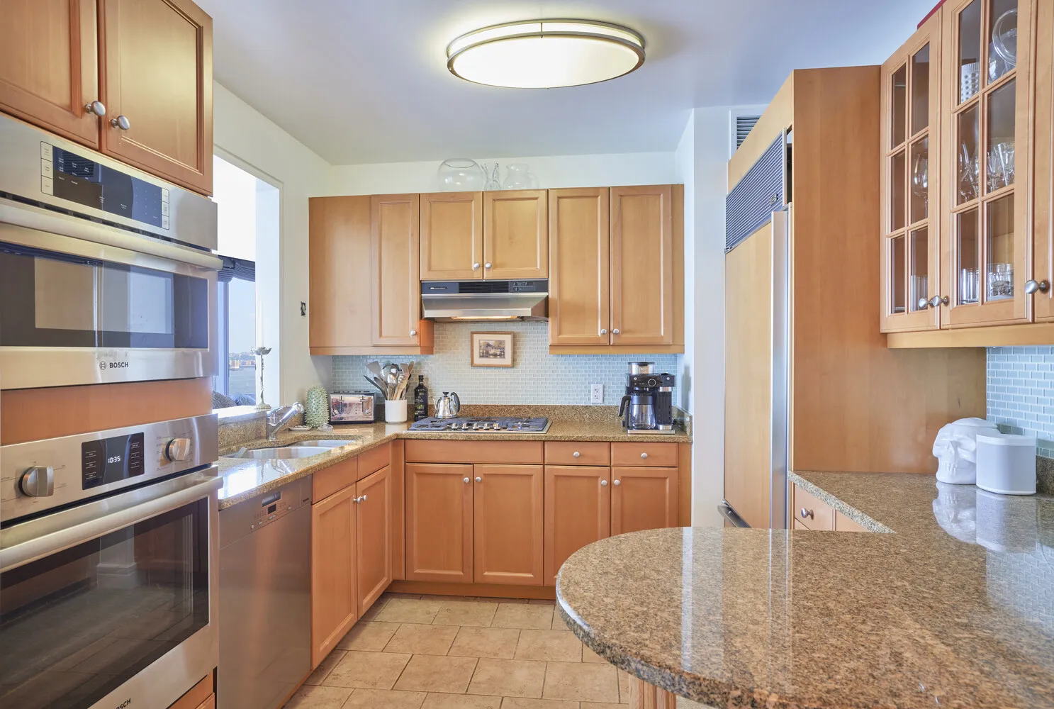 The rare corner layout features an efficient and highly desirable floor plan with excellent separation of living and bedroom areas-appealing to high-quality tenants and supporting strong rental demand. The open chef's kitchen includes premium appliances and a generous breakfast bar. The primary suite offers a walk-in closet and spa-like marble bath, while two additional en-suite bedrooms provide flexibility for family living, guest use, or home office configurations.