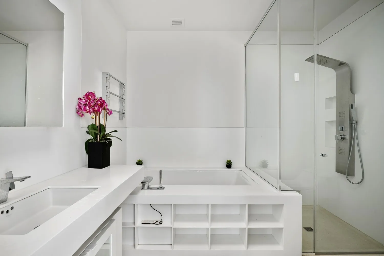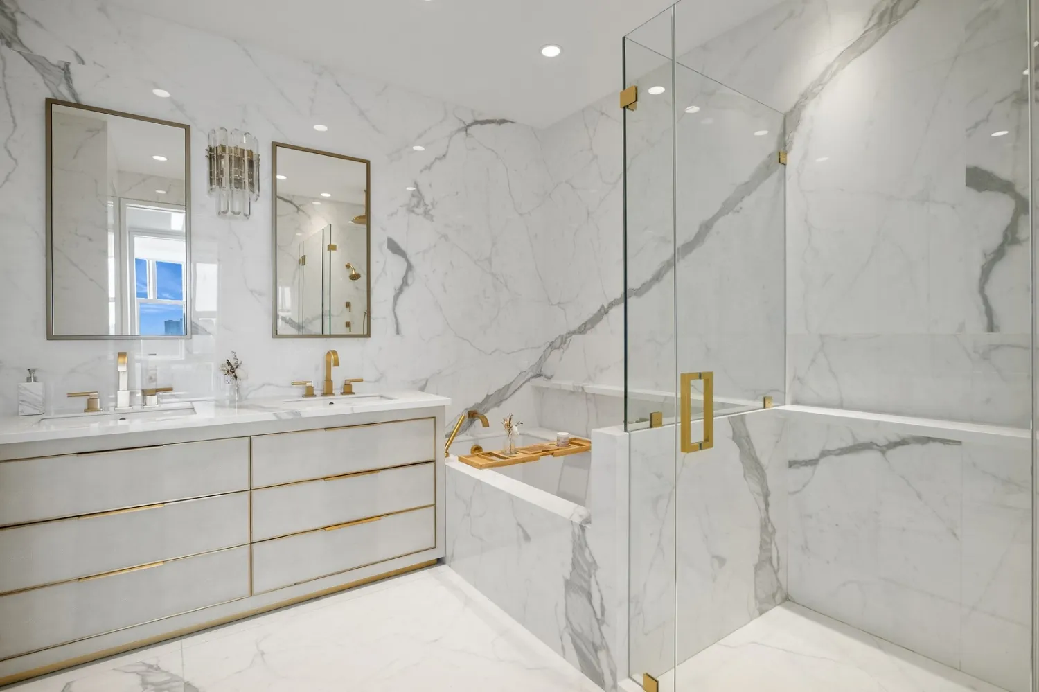 Floor-to-ceiling windows, soaring ten feet high, frame sweeping views of the Hudson River and downtown Manhattan to the south and west, offering a captivating backdrop to everyday life. The state-of-the-art kitchen, crafted by Cesar Cucine, features bespoke lighting, a porcelain island, and premium appliances from Bosch, Thermador, and Viking, ensuring a culinary experience beyond compare. Newly renovated bathrooms exude opulence with porcelain surfaces, Kohler tubs, and pristine sanitary ware.