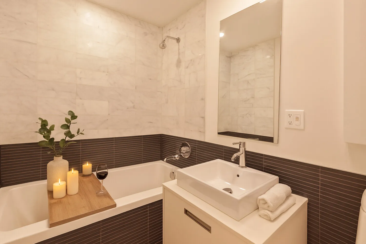 The rooftop cabana (close to 400 sq. ft.) delivers a true indoor-outdoor lifestyle. It's perfect for entertaining, unwinding, or hosting unforgettable movie nights under the stars. Set up a projector on the cabana wall, grab your popcorn, and enjoy films with the Manhattan skyline sparkling behind you. A private balcony off the living room adds another sun-filled outdoor space.