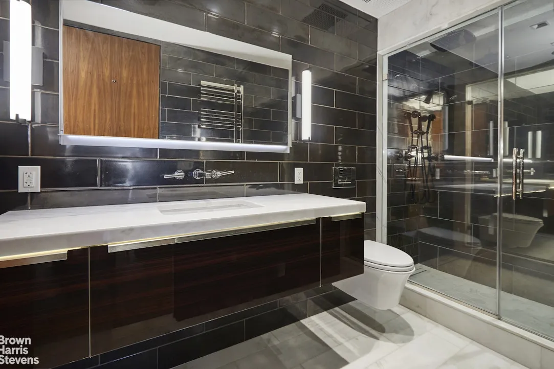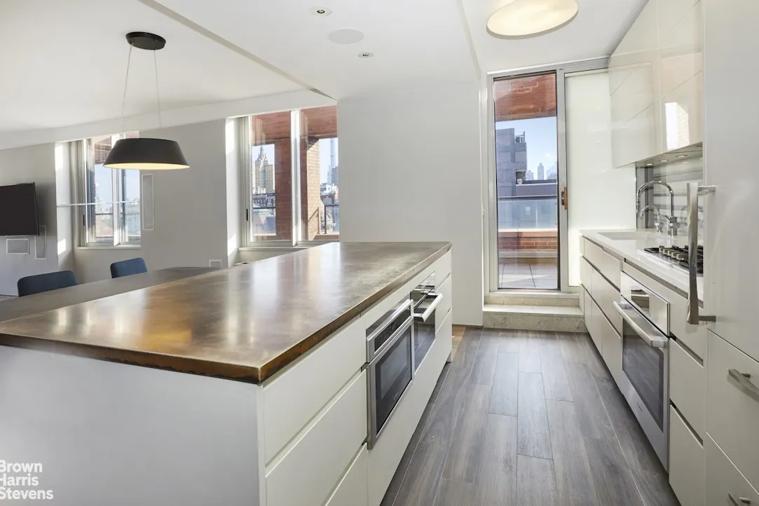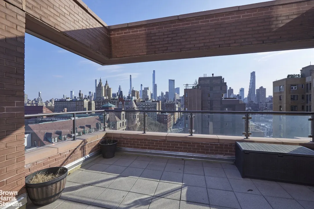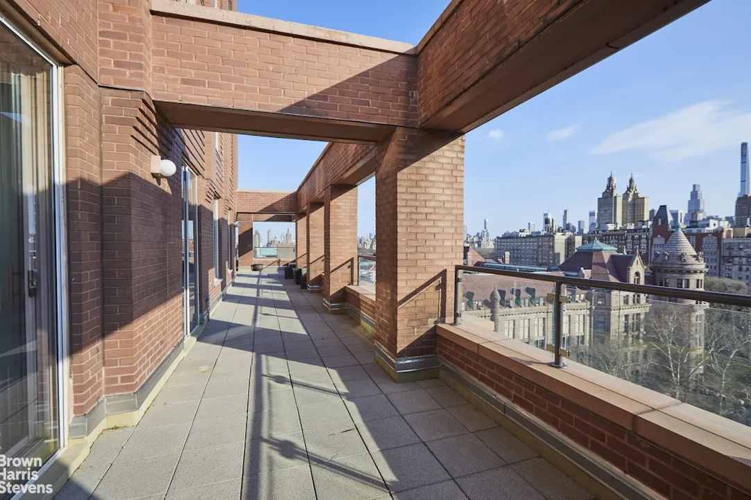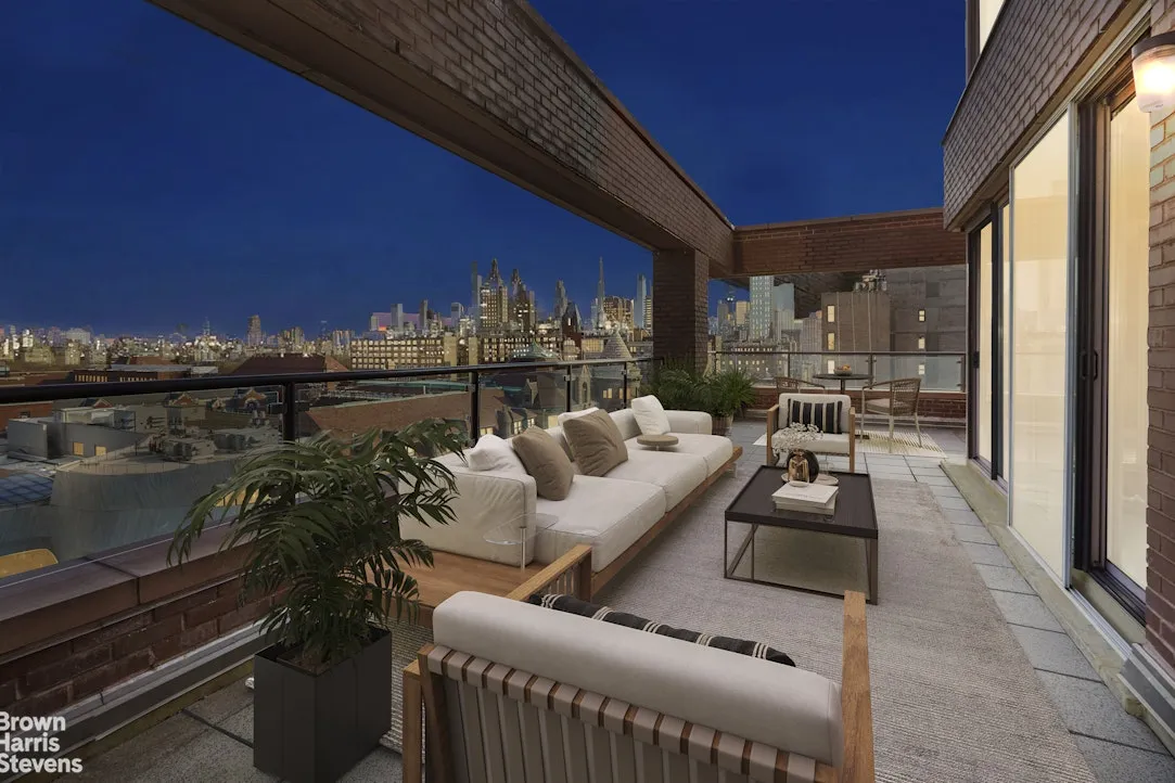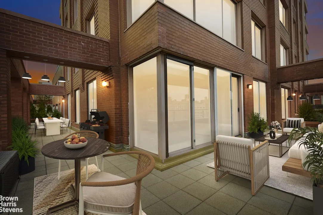Through a series of glass doors, the interior dissolves into an extraordinary private terrace-nearly 800 square feet of open-air living. Rare in both scale and accessibility, it wraps the residence in light and possibility. Morning light filters softly across its expanse; afternoons linger in quiet sun; evenings unfold against a backdrop of skyline and treetops. Designed with multiple zones for dining, lounging, and entertaining, it is less an outdoor space than a true extension of the home-a garden suspended above the city.