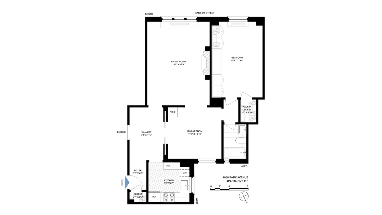 Turn-Κeу, elegant, sunny, prewar one bedroom, one bath on the 11th floor on Park Ave and East 87th Street. This gracious home has been completely renovated with modern finishes while retaining its prewar charm with 9'10" beamed ceilings, gorgeous moldings and hard wood floors. It is a perfect combination for comfortable living and entertaining.