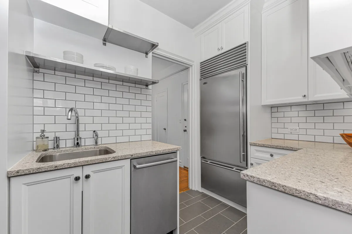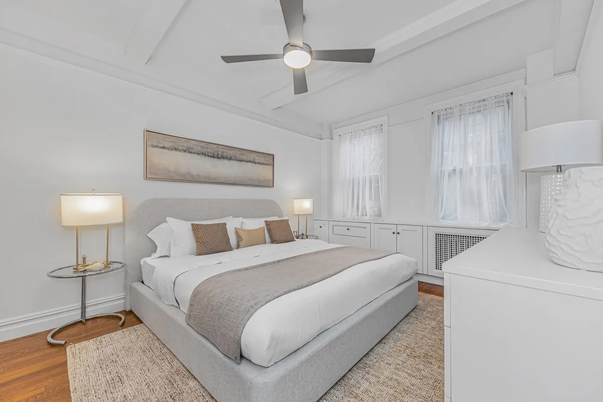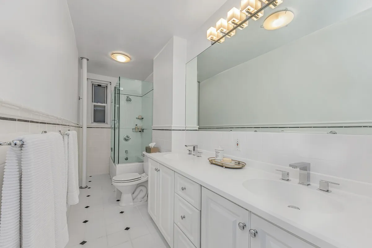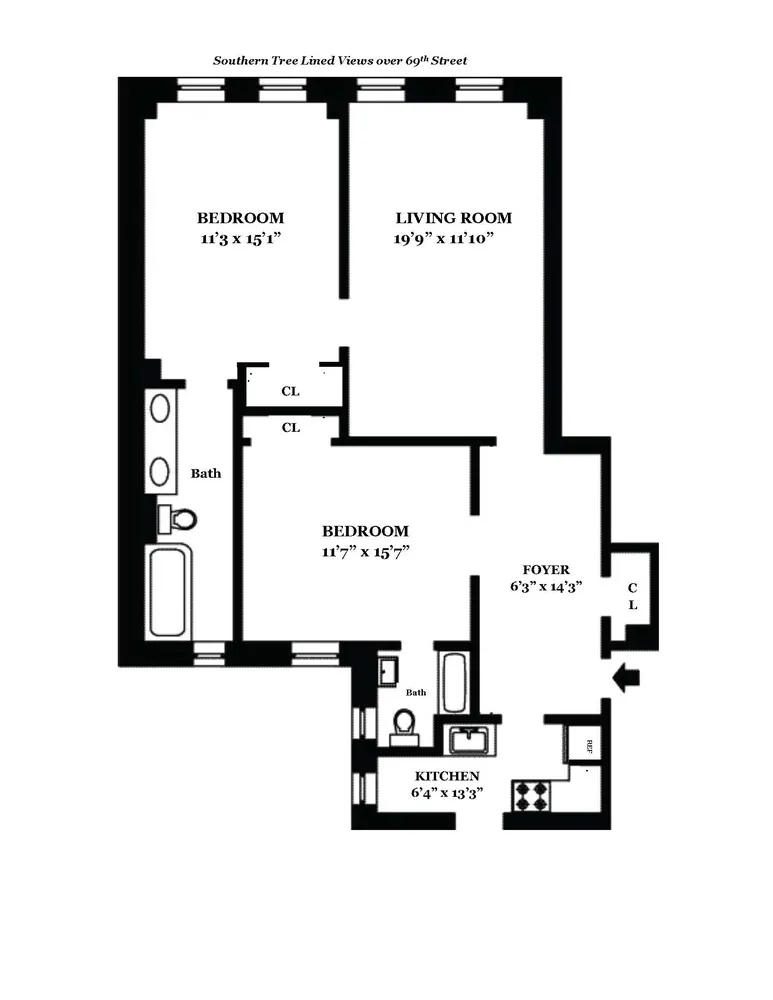 Perfectlу situated near the 69th Street gateway entrance to Central Park, this ultra charming prewar 2 bedroom with 2 FULL baths is move-in ready! The perfect blend of classic and contemporary, this turn-key home features an elegant entrance gallery, 9'-high beamed ceilings, split bedrooms, 2 updated bathrooms, new lighting, real hardwood floors, picture rail molding, plus super sunny southern exposures over the serene tree-lined vistas of West 69th Street. The modern windowed kitchen boasts a stainless Sub Zero refrigerator, Bosch dishwasher, GE profile range and microwave, all tied together by the quartz countertop and white cabinetry. Both bedrooms have their own full en-suite bathroom and ample closet space, as well as custom cabinetry under the windows for bonus storage. A wonderful opportunity on one of the city's most beautiful and serene blocks.
