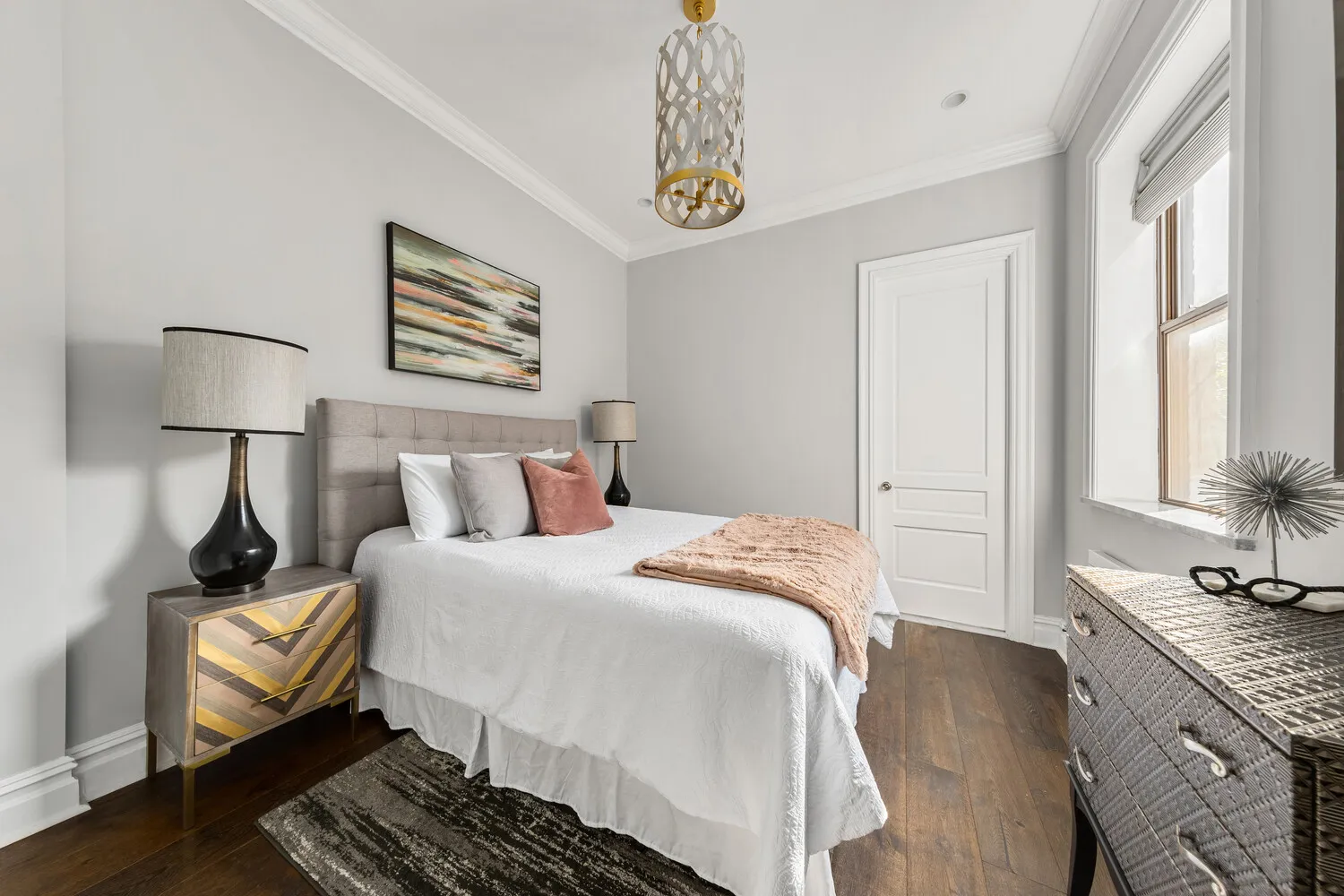 The fifth floor features a one bedroom unit and a two bedroom unit. The front facing one bedroom unit features charming views up and down the landmark block and has been fully renovated, the rear two bedroom unit has a rent stabilized tenant in place.