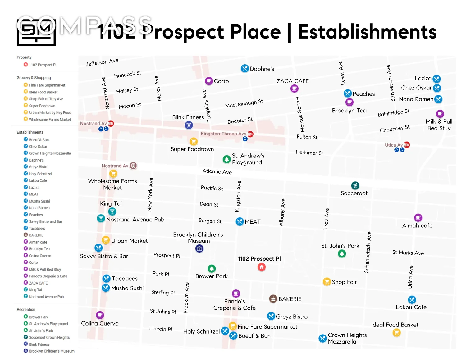 Set on picturesque Prospect Place, this home is surrounded by beloved neighborhood favorites, cultural institutions like the Brooklyn Children’s Museum, and green spaces like Brower Park. Convenient access to the nearby C and 3 subway lines connects you easily to the rest of Brooklyn and Manhattan. 1102 Prospect Place offers a rare combination of classic townhouse living, flexibility, and an unbeatable Crown Heights location.
