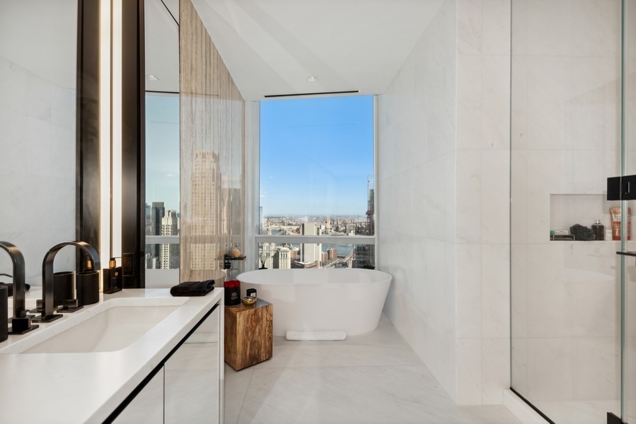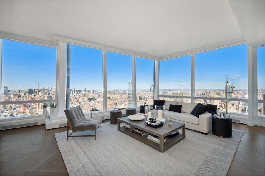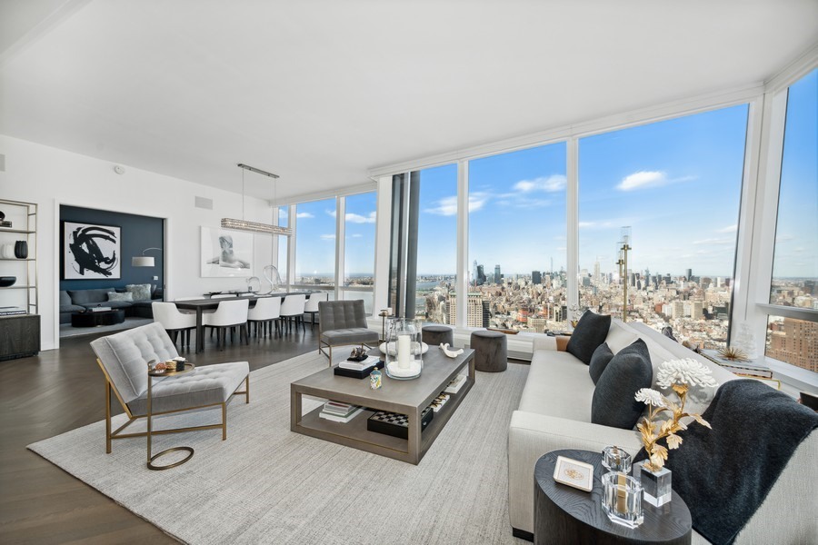 At 3,197 square feet, this exceptional 3-bedroom, 3.5-bathroom residence with ceilings up to 11'2” comprises an entire half floor, offering expansive north, south, and east-facing panoramic city views to the Empire State Building, Hudson and East Rivers and beyond.