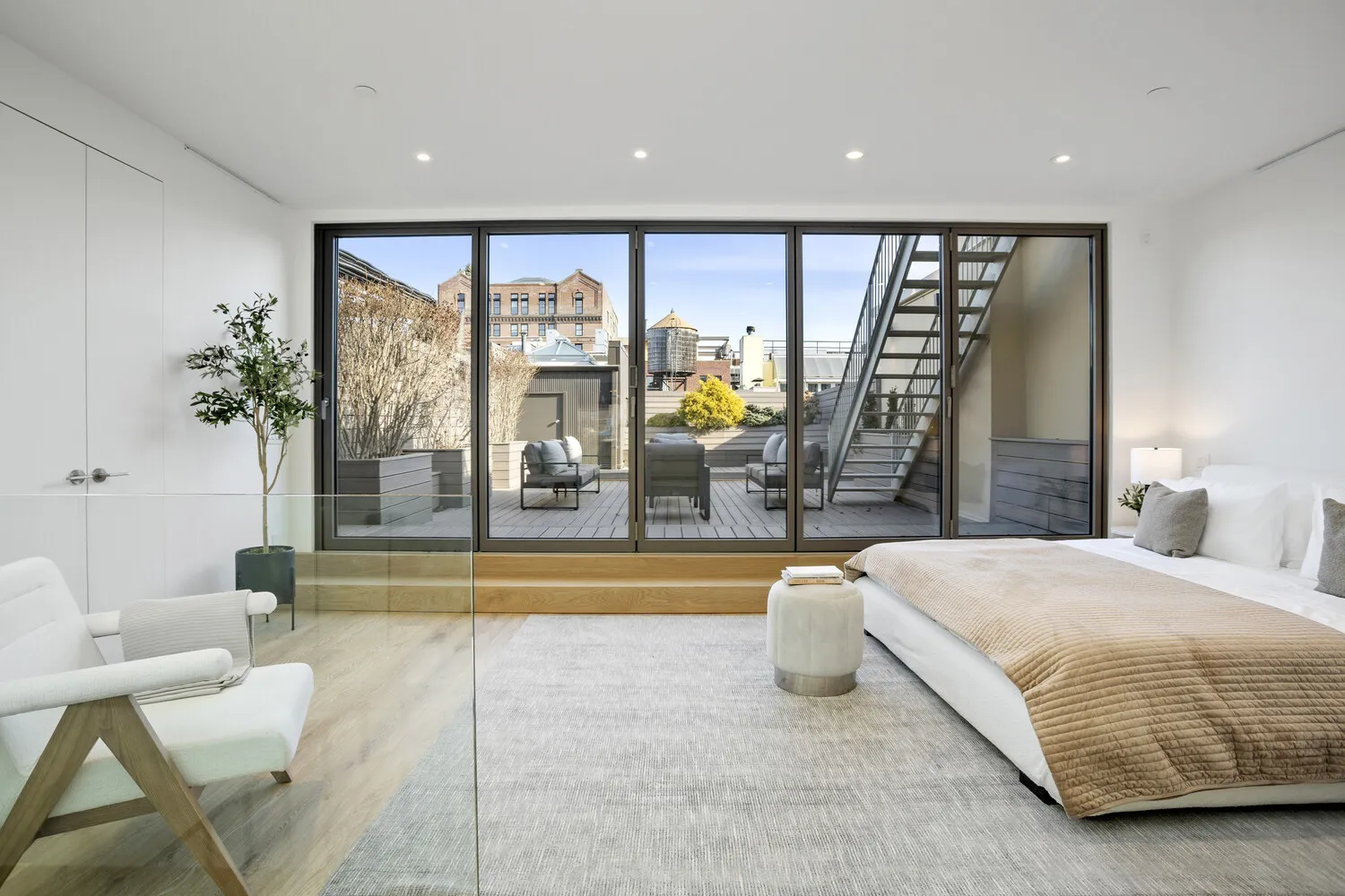 But it's the outdoor spaces that truly elevate this penthouse into the realm of the extraordinary. Directly accessible from the primary suite, the expansive private terrace and rooftop serve as your personal oasis above the bustling city below. Designed for relaxation, outdoor dining, and entertaining, these exclusive spaces are fitted with custom benches and irrigated planter boxes, creating a serene yet sophisticated setting for alfresco living. Revel in breathtaking views of New York City's iconic landmarks, including the Empire State Building and Freedom Tower-your private skyline experience.