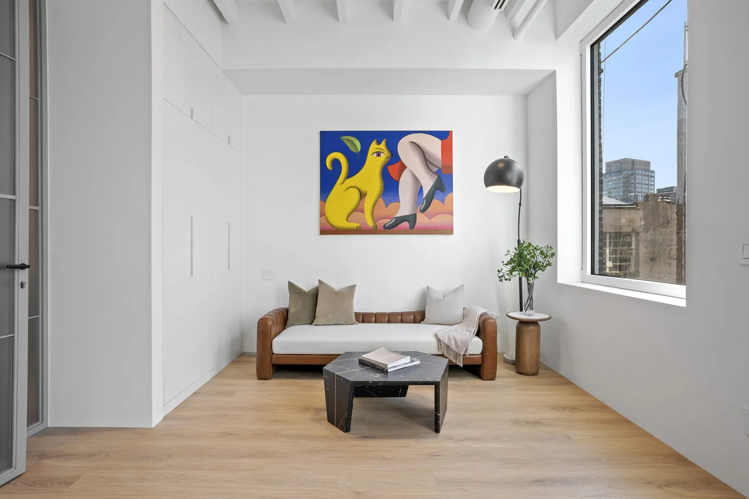 Just renovated to perfection, this mega loft includes wide-plank white oak flooring, a chef's kitchen that is nothing short of a culinary dream, a spacious walk-in pantry and a full-size washer/dryer. The primary suite is a true sanctuary, with a stunning wall of floor-to-ceiling windows and a sky-high skylight, offering panoramic views of the city skyline-a perfect place to wake up and unwind with unparalleled views every day. The second bedroom, with its innovative sliding glass wall, can be tailored to suit your needs-whether as a private guest room, office, or creative studio. Custom built-in closets add both beauty and practicality to the space.