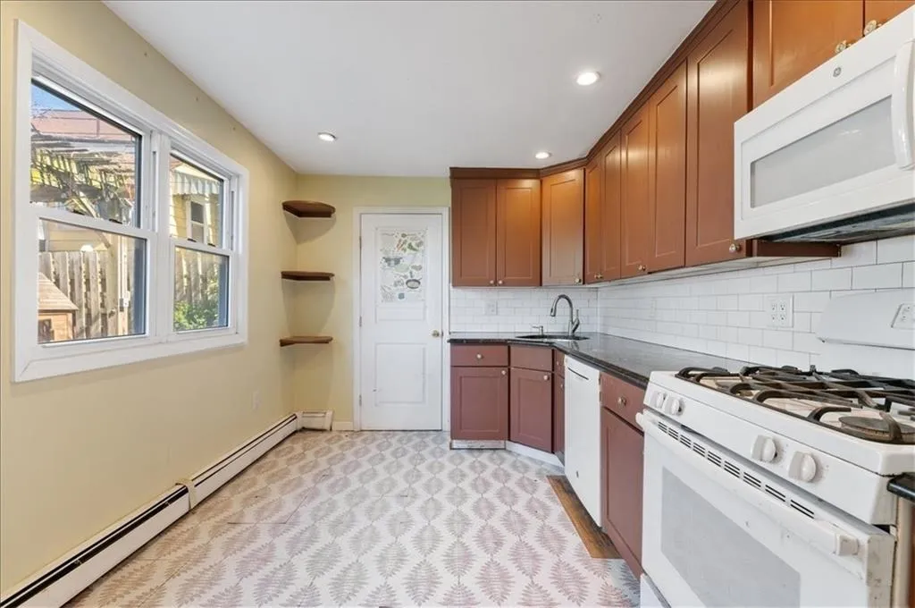 This incredible double-lot property in the heart of Gerritsen Beach offers a private oasis on one of the neighborhood’s most charming blocks. The first floor features an oversized living and dining area filled with natural light, complemented by stunning hardwood floors throughout. The spacious eat-in kitchen is beautifully appointed with granite countertops, rich hardwood cabinetry, stylish flooring, and two large windows that brighten the space. A fully renovated bathroom on the main level adds both convenience and modern appeal. Upper level, you’ll find three generously sized bedrooms, each offering ample closet space. All the bedrooms stand out with multiple windows, and abundant storage. A sleek, modern full bathroom completes the second floor. Additional features include a private driveway - so parking is never a concern - and an expansive backyard that’s perfect for entertaining year-round. The yard also features a wooden shed, ideal for storing tools, outdoor equipment, and more. Major updates include a boiler and water heater both under 10 years old, along with a roof approximately 15 years young. Opportunities like this rare double lot don’t come around often - don’t miss your chance to make it yours!