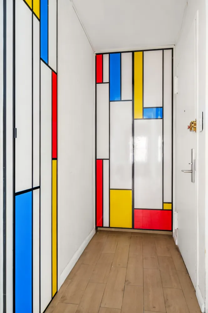 This space has just the right balance of mirrors, with opaque glass bathroom and bedroom doors. A must-see apartment.