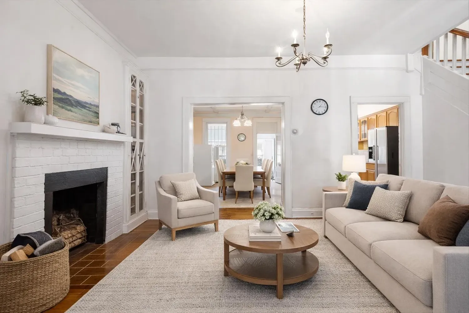 Entertain in style on the Parlor Floor, where pocket doors reveal an expansive living room with a bay window and high ceilings. Beyond, a library is anchored by built-in bookshelves and an incredible fireplace, setting the scene for memorable gatherings.
