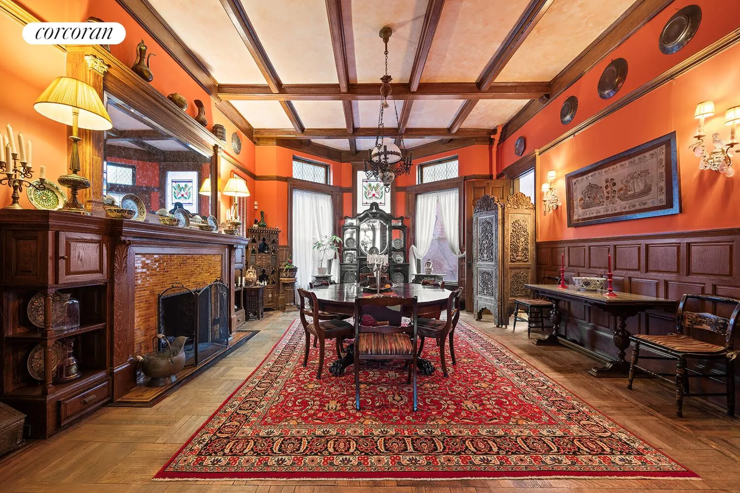 Designed in 1888 by architect James E. Ware, this exceptional Mount Morris Park townhouse represents a rare convergence of architectural pedigree, scale, and careful stewardship. Conceived during Harlem's most deliberate and aspirational period, the home reflects an era when architecture was expected to balance beauty, permanence, and daily life-and it continues to do so with remarkable clarity today. Executed in Middlesex brownstone, the Queen Anne facade features rock-faced stonework at the garden level, finely tooled finishes above, and a slate-clad mansard roof that has been recently updated in keeping with the home's original intent.
