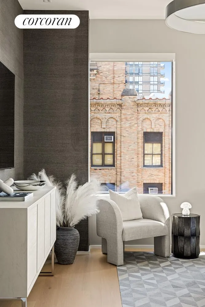 Additional highlights include Sonos sound throughout, custom closets, chic millwork and glass paneling, automatic shades, central air-conditioning, and a washer/dryer in a conveniently built-out closet with custom shelving. Exquisite wall treatments and refined finishes infuse the home with quiet sophistication. With only five residences per floor, privacy and exclusivity abound.