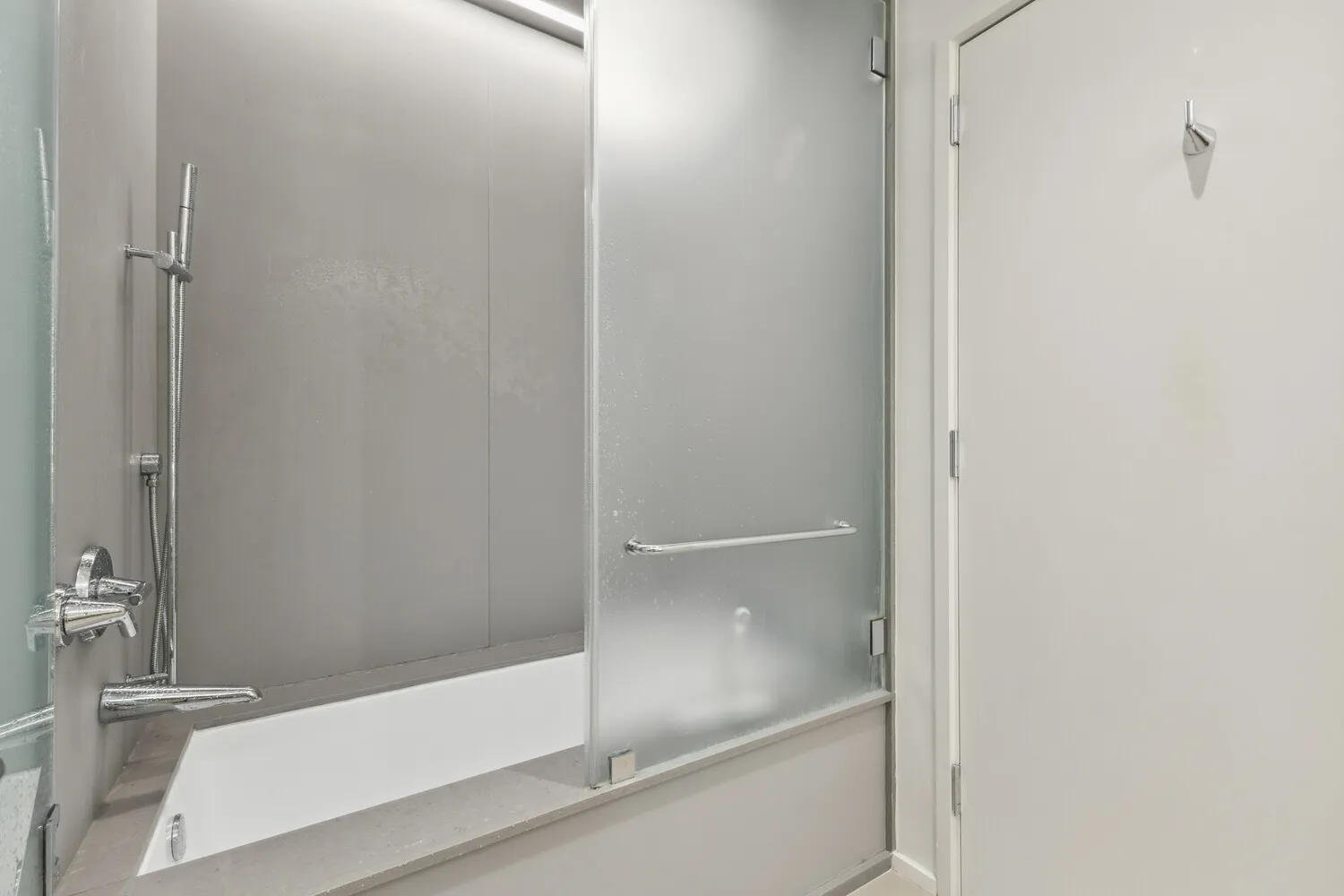 The spa-like, oversized bathroom stuns with a Calacatta Paonazzo-wrapped vanity, soaking tub with a full deck surround, heated floors and etched glass doors. Additional highlights include a massive walk-in closet with pocket door, Bosch in-unit washer/dryer, and central AC and heat.