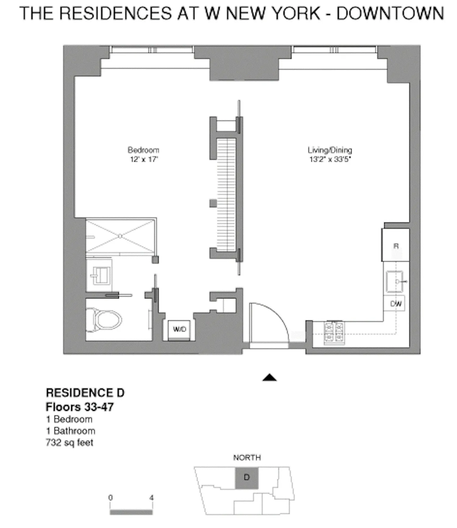 Impeccably stуled one‐bedroom apartment on a high floor with stunning northern views of NYC's skyline, 9/11 Memorial Park, Statue of Liberty, and beyond. Modern interior with a sleek white gloss kitchen, ebony stained wood floors, and Italian ceramic tiled bathroom with a towel warmer. Conveniently situated at 123 Washington Street, steps away from the Freedom Tower, Battery Park, and the Financial District. Easy access to all train lines and nearby amenities, making it an ideal urban retreat. Enjoy the W Hotel's renowned WHATEVER/WHENEVER service and amenities, accessible round the clock, every day of the year. Experience the stylish lobby crafted by renowned designer David Rockwell.