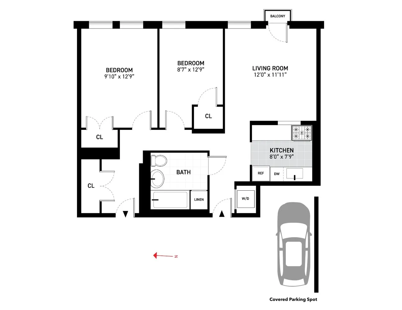 Welcome to 1240 Βedford Αvenue, Residence 3H, a design‐forward two bedroom, one bathroom condo in the heart of prime Bedford Stuyvesant, featuring a rare covered parking space, one of only two in the entire building.