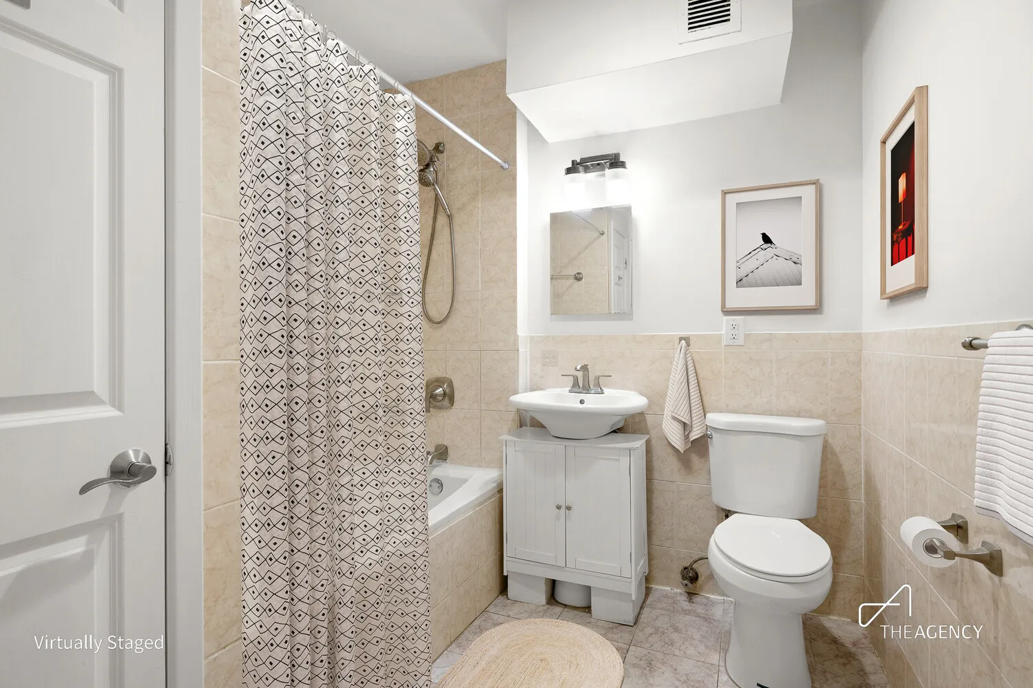 The primary bedroom is comfortably sized for a king size bed and offers a calm, retreat-like feel. The second bedroom is equally versatile, ideal for guests, a home office, or a creative studio. A rare second entrance to the apartment adds an unexpected layer of flexibility, providing an oversized closet, additional storage, or room to carve out a dedicated work from home setup.