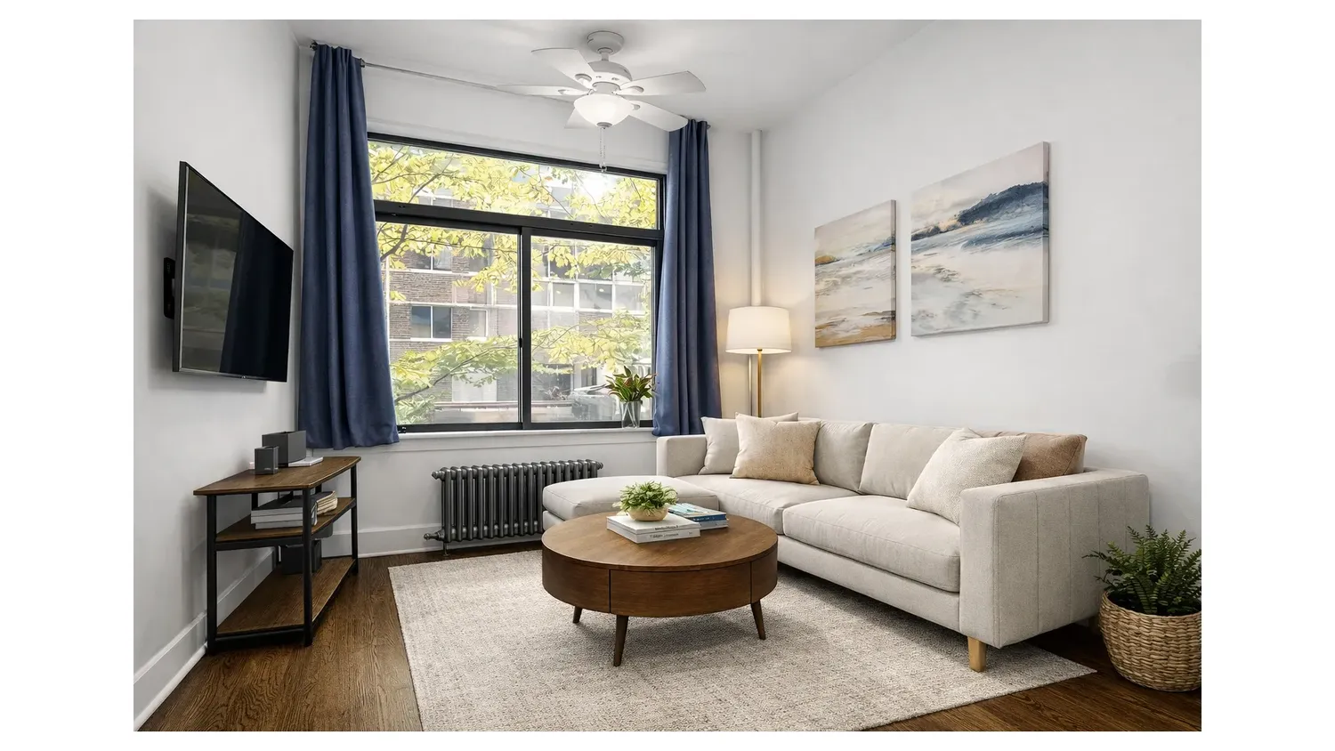 This thoughtfully reimagined junior one-bedroom combines the best of pre-war character with contemporary upgrades, offering a tranquil retreat in the heart of the city.
