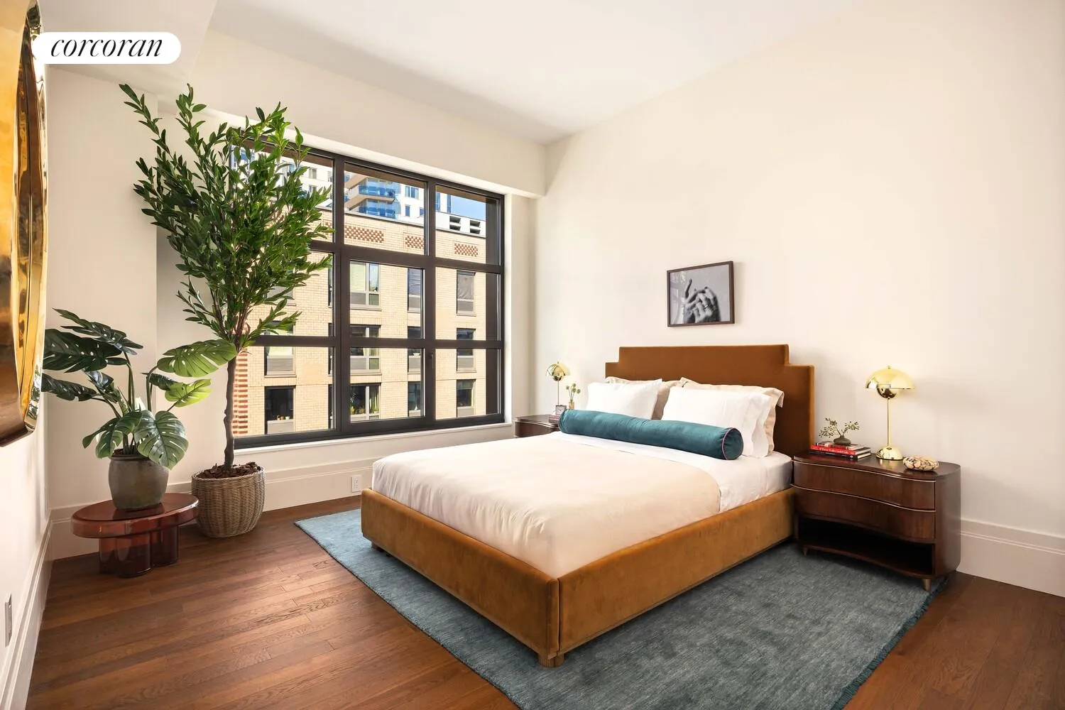 The unique corner location of the building ensures a variety of viewpoints ranging from south-facing units, to water views, to birds-eye views of the Williamsburg Bridge and Manhattan skyline, or pastoral views over the building's landscaped native gardens. Enter the building into a magnificent lobby that introduces you to the Parisian-inspired design seen throughout every home. An ageless palette includes woodwork juxtaposed with rich metals, natural stones, curated artwork, and ambient lighting; the perfect embodiment of European craftsmanship living in harmony with Brooklyn's creative heritage. Building features include a part-time attended lobby plus a virtual doorman, package room, two elevators, storage closets for every home, and a bike room. A magnificent second floor amenity space flooded with natural light has been thoughtfully envisioned to meet your every need and includes a spacious co-working space and lounge with an adjacent terrace, an oversized and elegant fitness center, and a whimsical children's playroom.