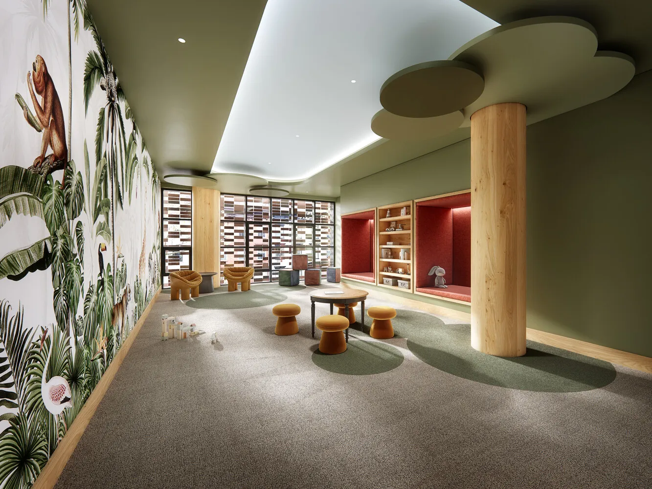 The unique corner location of the building ensures a variety of viewpoints ranging from south-facing units, to water views, to birds-eye views of the Williamsburg Bridge and Manhattan skyline, or pastoral views over the building's landscaped native gardens. Enter the building into a magnificent lobby that introduces you to the Parisian-inspired design seen throughout every home. An ageless palette includes woodwork juxtaposed with rich metals, natural stones, curated artwork, and ambient lighting; the perfect embodiment of European craftsmanship living in harmony with Brooklyn's creative heritage. Building features include a part-time attended lobby plus a virtual doorman, package room, two elevators, storage closets for every home, and a bike room. A magnificent second floor amenity space flooded with natural light has been thoughtfully envisioned to meet your every need and includes a spacious co-working space and lounge with an adjacent terrace, an oversized and elegant fitness center, and a whimsical children's playroom. Work from home with ease ensconced in a luxurious and peaceful environment.