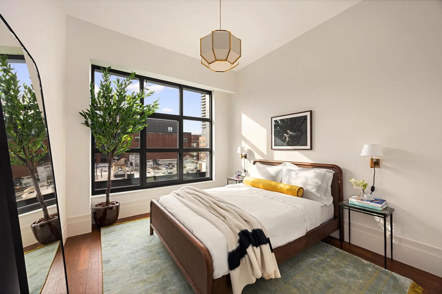 The building itself need to be seen in person to appreciate its elevated attention to detail both inside, and out. Distinguished by an aged-brick facade and oversized steel casement windows that allow light to flood in all day, the building stands out from the crowd while also paying homage to the neighborhood's rich industrial past. Soaring ceiling heights in every unit range from 10 to 12 feet, allowing a superiority of scale with no rival in the neighborhood. Sumptuous handcrafted interiors lend an undeniable warmth and include oversized moldings, coffered ceilings, custom task and ambient lighting, vintage wood floors, unlacquered brass hardware, oversized doors, shade pockets, and fully customized closets so that you can just move right in.