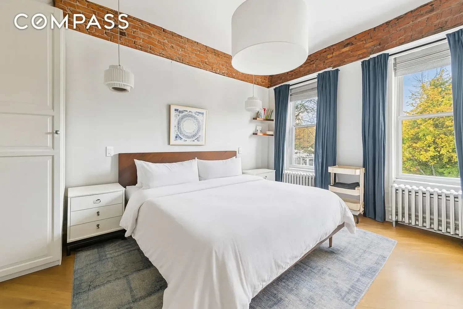 The owner’s duplex retains its original charm, with exposed brick walls, dark-stained hardwood flooring, and beautifully preserved moldings around the doors and windows. The home is equipped with modern HVAC and mini-split systems for year-round comfort, plus solar panels on the roof to help save on energy costs. The hot water tank was replaced last year, adding to the home’s peace of mind and efficiency.