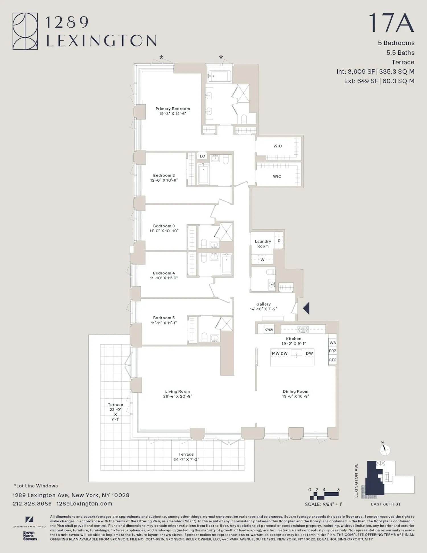 area. Sponsor reserves the right to make changes in accordance with the terms of the Offering Plan, as amended ("Plan"). In the event of any inconsistency between this floor plan and the floor plans contained in the Plan, the floor plans contained in the Plan shall prevail and control. Plans and dimensions may contain minor variations from floor to floor. Any depictions of personal or condominium property, including, without limitation, any interior and exterior decorations, furniture, furnishings, fixtures, appliances, and landscaping (including the maturity of growth of landscaping), are for illustrative and conceptual purposes only. No representation or warranty is made that a unit owner will be able to implement the furniture layout shown above. Sponsor makes no representations or warranties except as may be set forth in the Plan. THE COMPLETE OFFERING TERMS ARE IN AN OFFERING PLAN AVAILABLE FROM SPONSOR. FILE NO. CD17-0315. SPONSOR: 86LEX OWNER, LLC, 445 PARK AVENUE, SUITE 1902, NEW YORK, NY 10022. EQUAL HOUSING OPPORTUNITY.