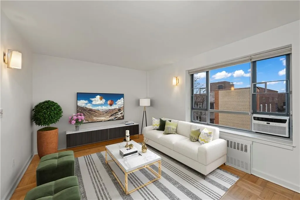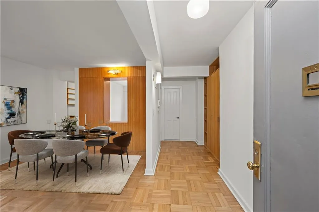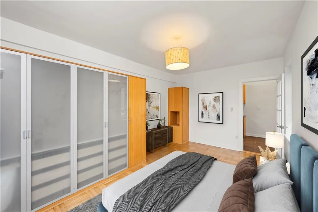 This unit includes a deeded parking space in the building’s garage. Parking spot #5 for $430 a month. Building amenities include door attendants, a live-in superintendent, 24-hour laundry facilities, bike storage, and additional storage options for a fee. The building is smoke-free. Subletting, pieds-à-terre, co-purchasing, gifting, guarantors, and pets are permitted, subject to co-op board approval.