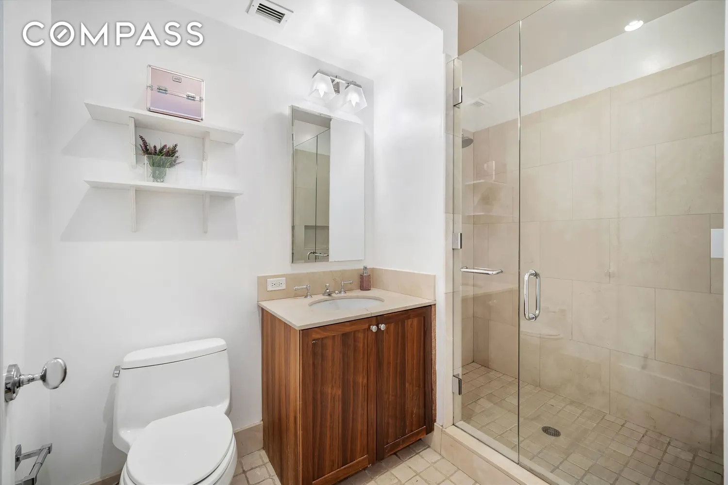 The home’s three bedroom suites are tucked down a private hall for optimal peace and privacy. At the end of the hall, explore the corner owner’s retreat featuring a king-size bedroom that opens to its own private terrace. Two closets, including a windowed custom walk-in, provide abundant wardrobe storage, while the en suite spa bathroom impresses with a walk-in shower and double vanity surrounded by premium stone and tile finishes. Two spacious and bright secondary suites welcome friends and family with roomy closets and private bathrooms. An in-unit washer-dryer and central air add comfort and convenience to this turnkey Chelsea haven.