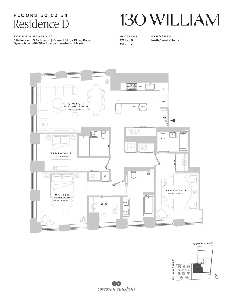 130 William, rising approximately 800 feet tall, is designed by the award-winning visionary architect Sir David Adjaye in collaboration with Hill West Architects. Residences are defined by airy interiors framed by oversized arched windows with elegant bronze detailing. All residences showcase bespoke features such as custom Italian marble quarried from the Apuan Alps and crafted by artisans in Tuscany, as well as custom Adjaye-designed bronze fixtures. The Premium Collection encompasses loggia, double-height, and duplex residences, comprised of generously scaled rooms and soaring loft-like ceilings. Penthouse and loggia residences flow into expansive and covered outdoor spaces, providing a seamless transition between indoor and outdoor living.