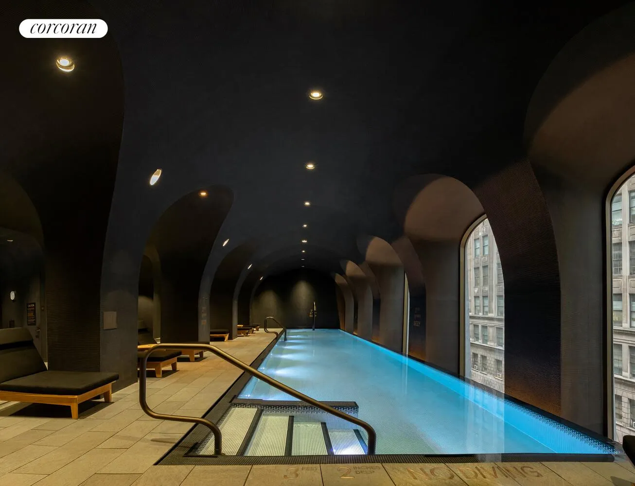 130 William boasts a thoughtful and comprehensive suite of over 20,000 square feet amenities that complements an energetic city lifestyle. A full-scale health and wellness club includes an infinity-edge spa pool, thermal pool, cold plunge pool, rain shower, dry sauna, and massage room. The state-of-the-art fitness center features a full yoga studio, basketball court, and a cool-down terrace. A suite of entertainment facilities includes indoor and outdoor lounges complete with a chef's catering kitchen and private dining room, club room, game room, IMAX Private Theatre, golf simulator, and a large-scale children's activity center. The vast collection of amenities invites residents to experience a range of both energizing and contemplative moments.