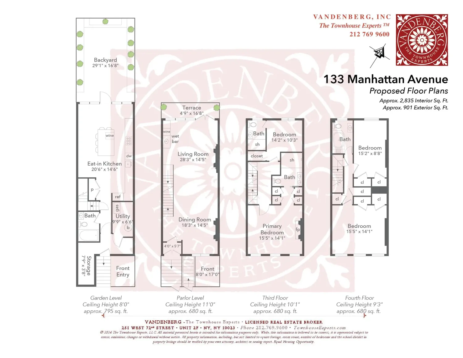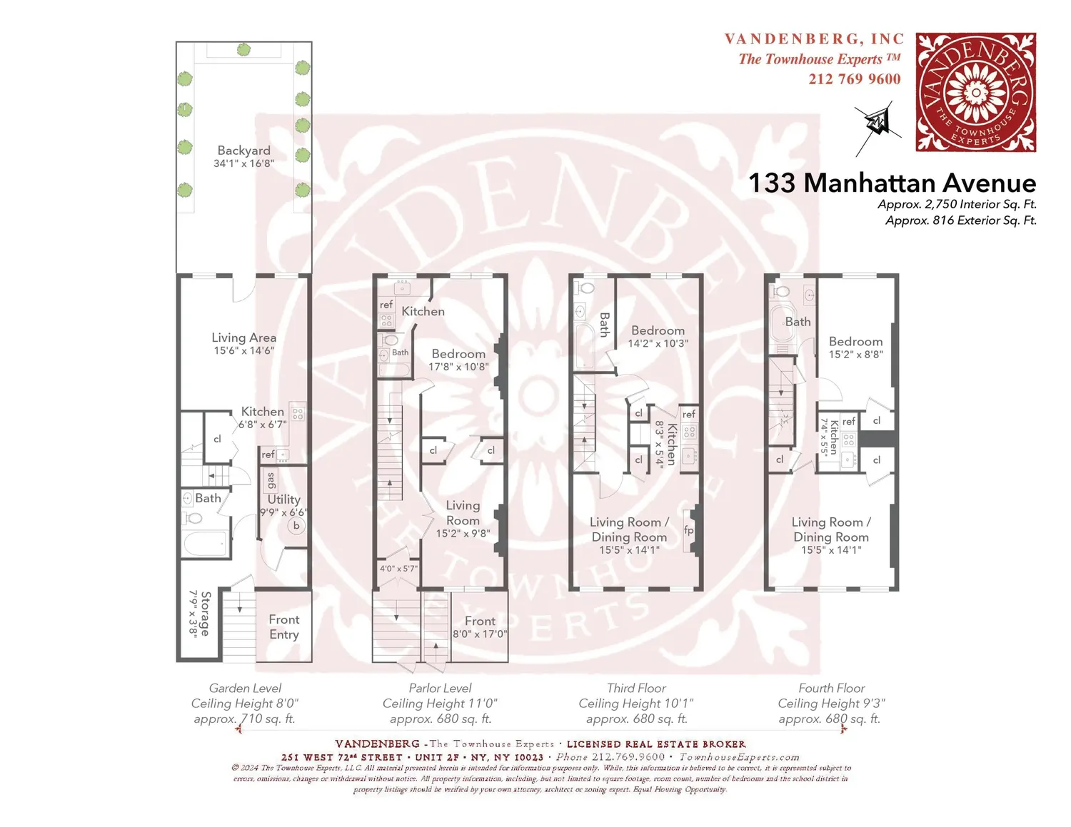The townhouse is currently divided into four individual apartments, including three one-bedroom units and a studio with garden access. Everything is in working order and move-in ready! Previously the owners enjoyed the property as a single-family residence, complete with a spacious eat-in kitchen on the garden floor. Drawing from the previous layouts, you can comfortably live at 133 Manhattan Avenue while renovating it into your dream-single family townhouse at your own pace. The townhouse can be delivered vacant.