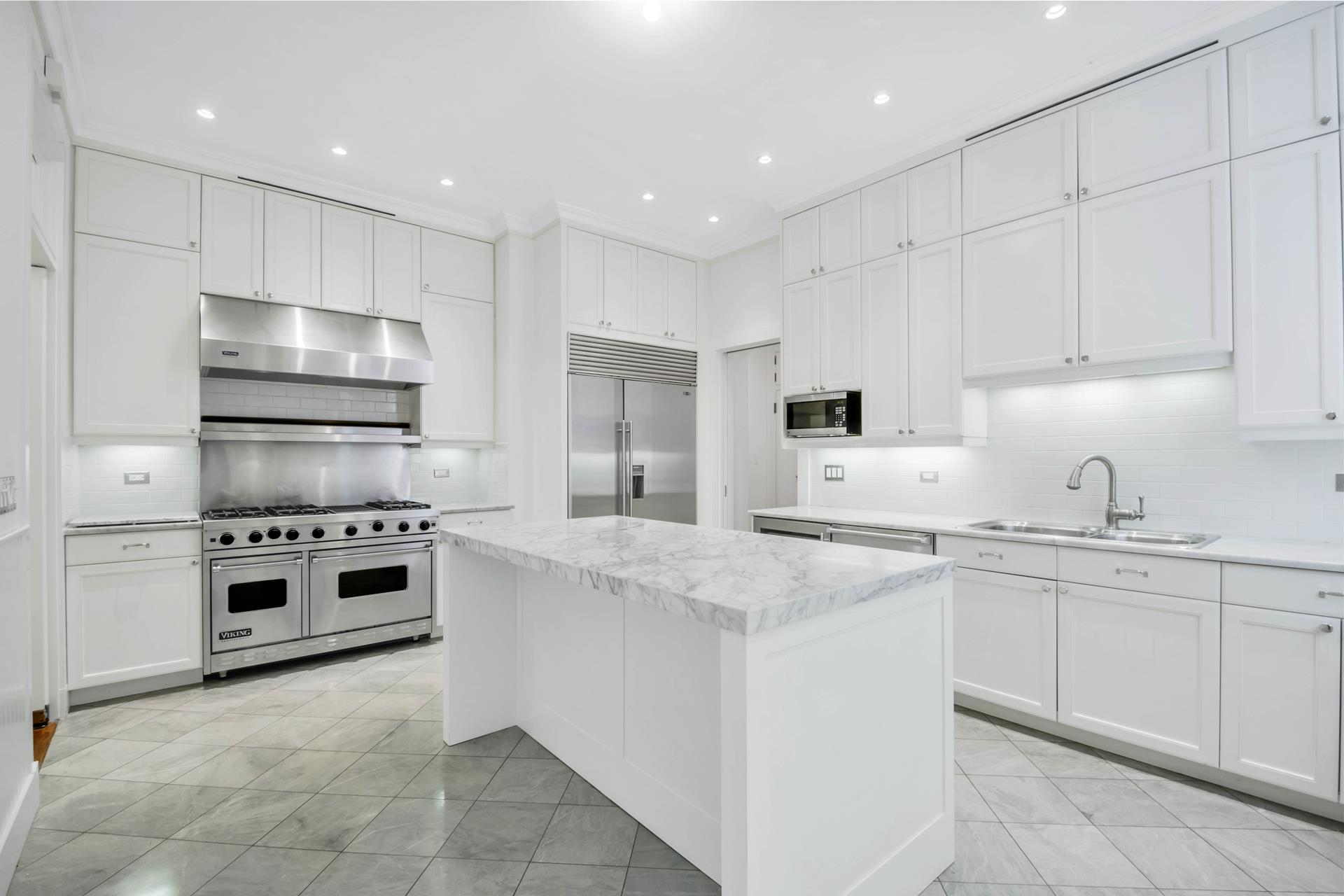 The windowed kitchen is spacious, and includes a butler's pantry, Sub-Zero refrigerator, Viking Stove, stone counters and large dining island. A separate area accommodates the washer and dryer. The bedrooms are located off a private gallery, two of which would make a fabulous master suite with office or dressing room. There are 11' ceilings, beautiful crown moldings, and three decorative fireplaces. Three full windowed baths plus powder room. Ample closets. Pets permitted by approval of the landlord.