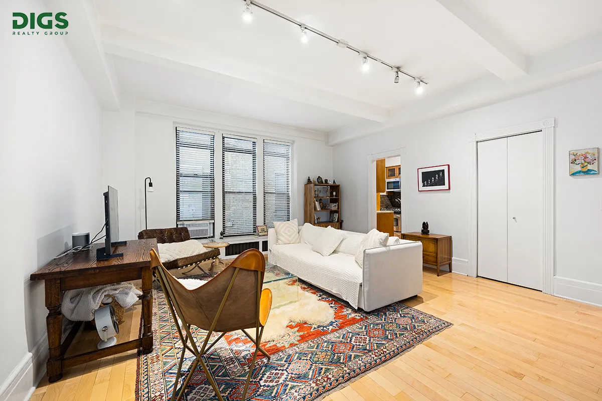 The Lyons is a well-maintained pre-war co-op with a beautiful lobby on the most coveted block in the UWS. Down the street from the Museum of Natural History, Central and Riverside Parks, easily accessible to the 1, 2, 3, B, and C subways, and around the corner from the best restaurants and cafes the UWS has to offer, including Daily Provisions, Levain Bakery, Miriam, Mermaid Inn and countless others. The building amenities include an elevator, a live-in super and free bike storage. Pet friendly, guarantors case-by-case, co-purchasing permitted. Parents buying for children and pieds-a-terre case by case.