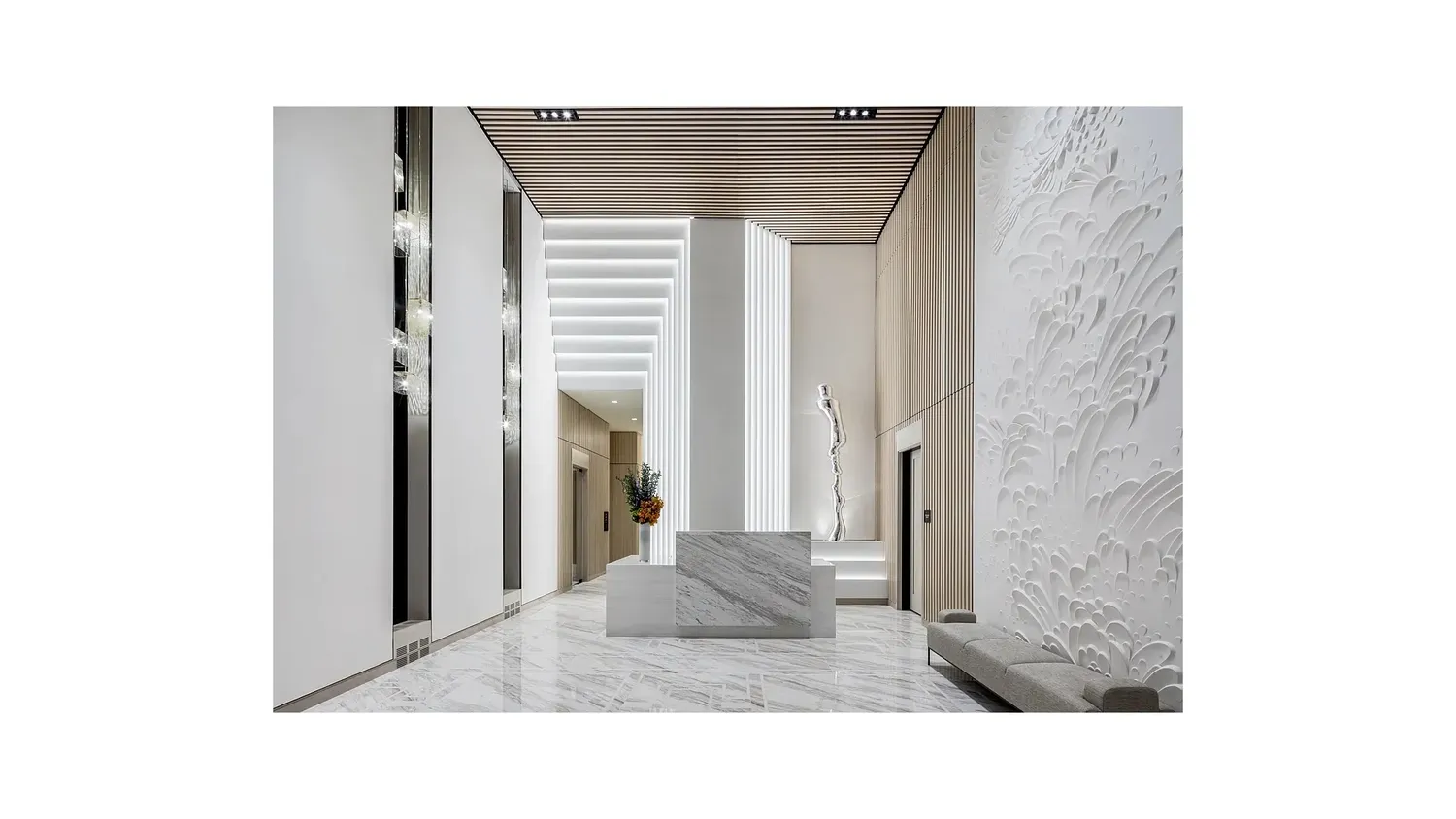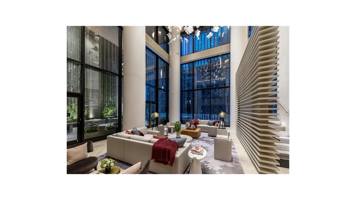 At 71 stories, The Centrale takes its place alongside Midtown Manhattan's most iconic buildings, encompassing a collection of 124 classic yet undeniably modern residences, envisioned by Champalimaud Design. The Centrale's exterior design by Pelli Clarke Pelli Architects, builds upon classic Art Deco architecture with contemporary elements thoughtfully displayed throughout, including the lightly reflective glass facade articulated with facets of terracotta chevrons. The Centrale reveals its base, body, and crown from street to the sky with crystalline switchbacks, creating a dynamic rhythm of angled reflections of the surrounding Midtown landscape.