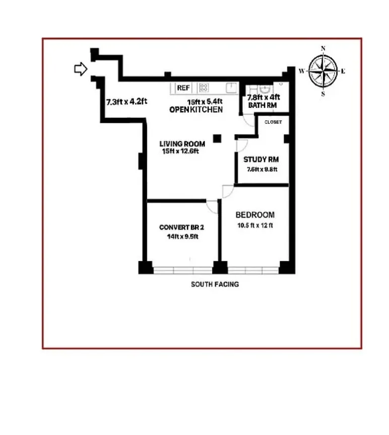 The home offers two sizable south-facing bedrooms, both filled with natural light and comfortably proportioned to accommodate full bedroom furnishings. A separate large walk-in closet adds exceptional storage and organization, complemented by additional closet space throughout the apartment.