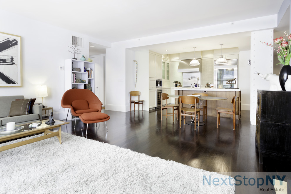 The former Merchant's Bank of New York, 141 Fifth Ave in Flatiron has been gloriously restored to house exquisitely-detailed residences for today's sophisticated tastes. This Beautifully designed and crafted 2 bedroom/ 2 bath located within downtown's finest Condo Building features a more traditional approach to design with the highest level of finishes. Complementing the fully restored ornate 1897 terra cotta detailing, copper cupola, and curved plate glass storefronts, these are highly detailed homes for sophisticated palates. Unit 3D features 10.5 foot ceilings, oversized windows, English hand painted style custom kitchen, 6 burner Wolf range, glass door Subzero, Miele coffee system, Waterworks freestanding tub, Waterworks fixtures and fittings, custom mosaic bathroom floors and wood framed fluted glass doors.