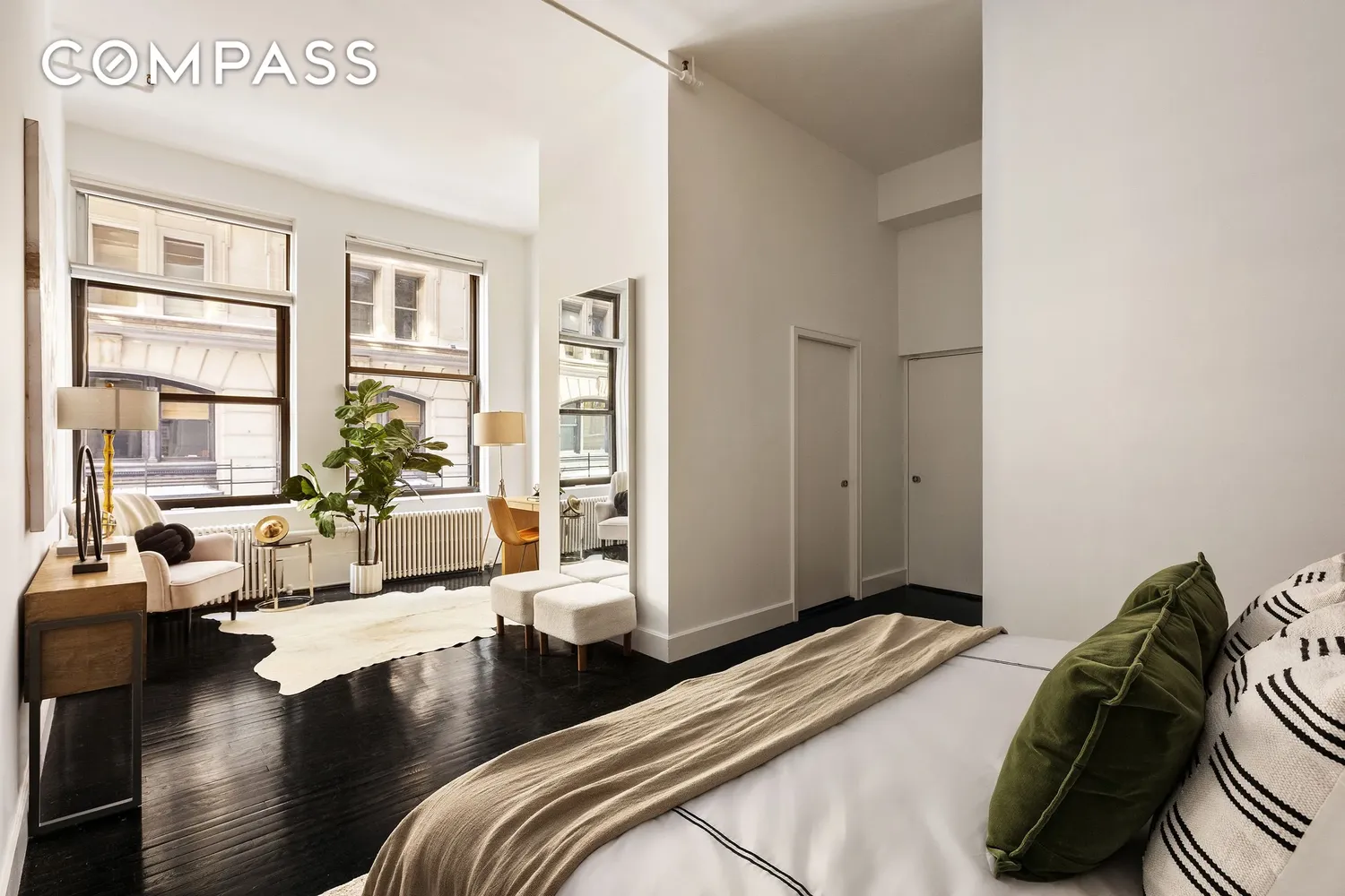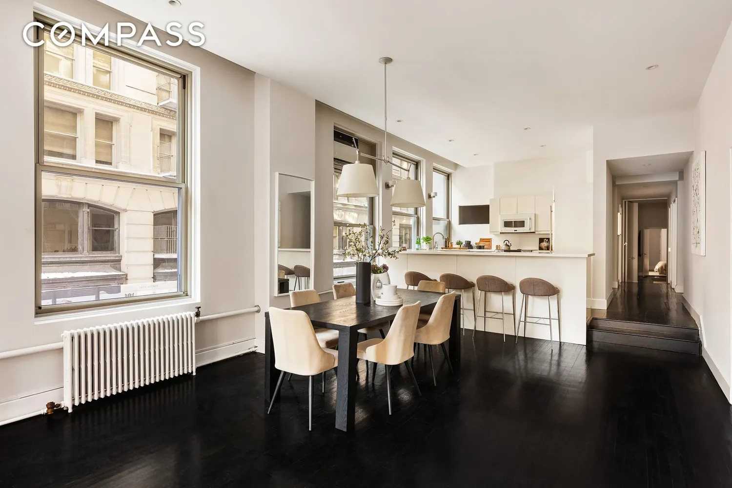 A singular offering, this sunlit, full-floor corner loft blends scale, light, and historic detail with an intentional layout — an elevated expression of authentic Flatiron living.