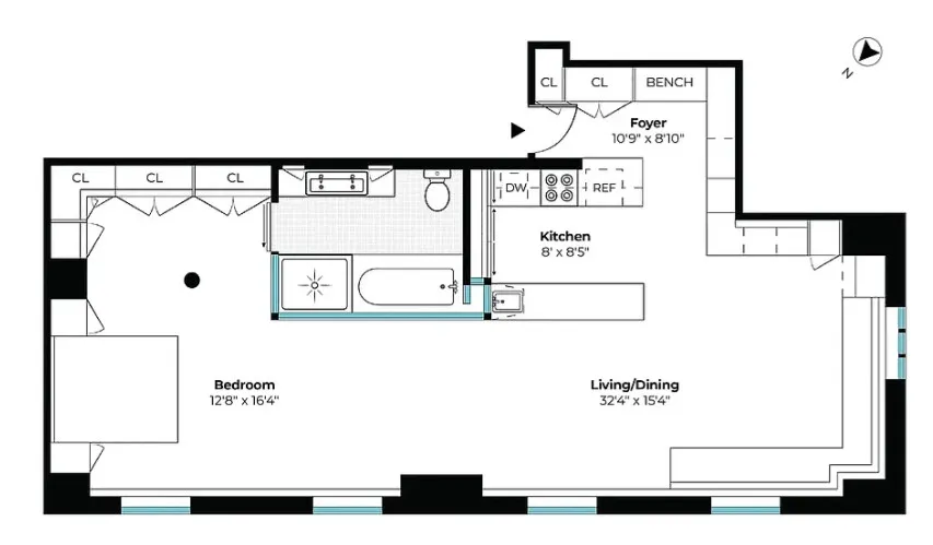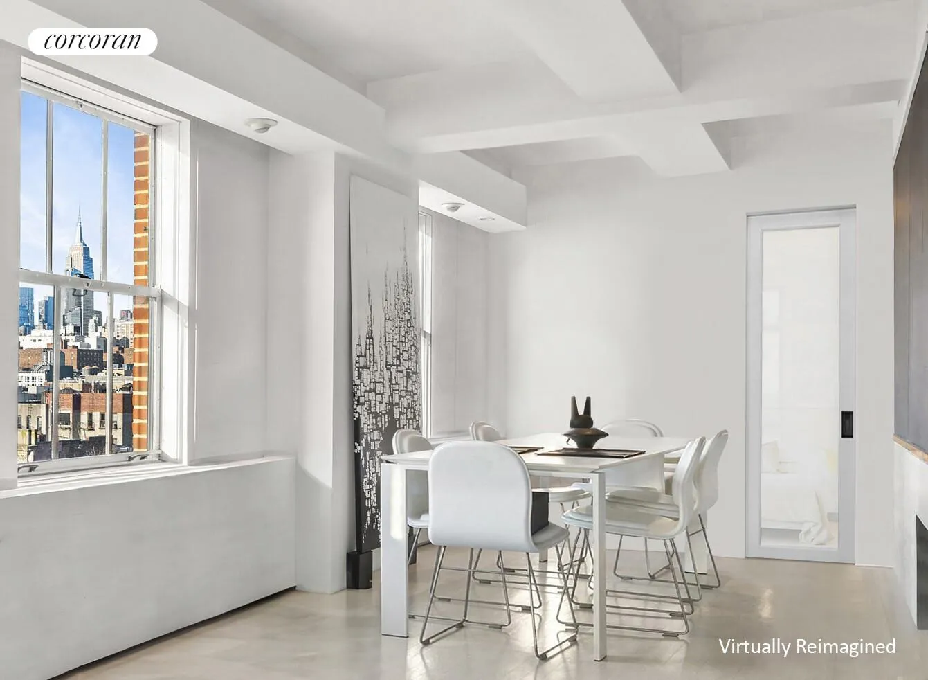 While currently configured as an open loft, the layout was intentionally designed to be easily adaptable, with the option to add a millwork partition with pocket doors to create a separate sleeping or work area-without sacrificing light, views, or circulation.