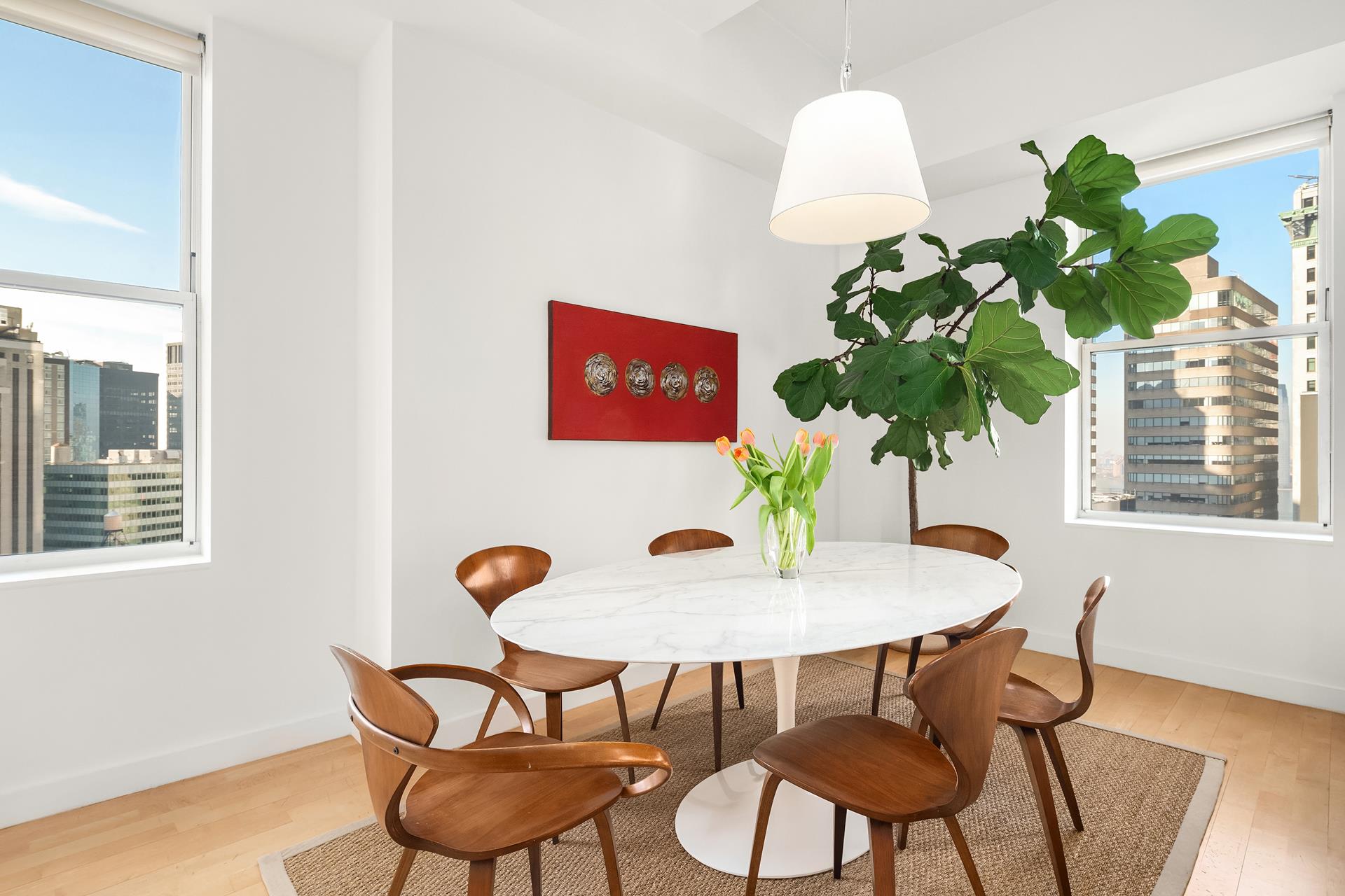 NO FEE, FURNISHED/UNFURNISHED RENTAL.Sun flooded loft like 3 bedroom 2 bath with double south & western exposures and open city views. Located in the tower section, this is a one of a kind residence with only 2 apts with this layout in the entire building .The grand entrance will lead you to the spacious corner living room featuring 11' high ceiling, 5 windows and a separate open large kitchen boasting Philippe Starck fixtures, Miele dishwasher, Bosch range, Jenair fridge, garbage disposal and a large pantry. The master bedroom features a separate dressing area with a wall of custom closets and en suite white Tasso marble spa master bath with a separate deep soaking tub and glass enclosed shower, double sink with custom made designer walnut cabinetry and Italian Flos light fixtures. Nice sized 2 extra bedrooms all fitted with custom designer closet doors, California closets, wireless thermostat , solar shades and blackouts complete this unique residence. Washer and dryer in unit and a bonus home office space. Downtown by Starck is Luxury 24H doorman concierge landmark condo building offering unparalleled amenities including a state of the art fitness center, swimming pool, hot tub, sauna, yoga/dance studio, half basketball court, squash court ,children's playroom, bowling alley, movie theatre and furnished landscaped rooftop deck with reflecting pool a fireplace and amazing downtown views.Close to all transportation 2,3,4,5, J, Z and NR trains, supermarkets, Battery Park, The Seaport, vibrant Stone street and restaurants such as Nobu, Tacombi, Eataly, Manhatta, Bobby Vans and more.Brokers: CYOFOwner/Broker.