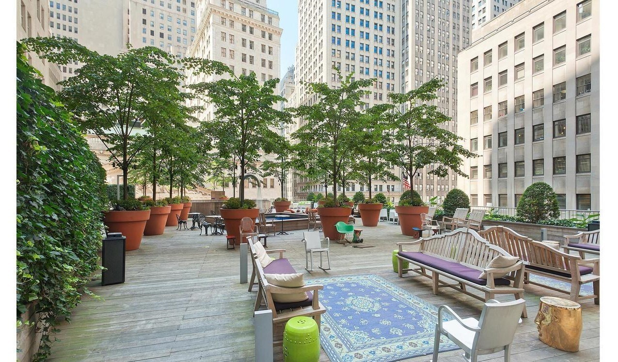 15 Broad Street sits on the corner of Wall Street across from the New York Stock Exchange. The landmarked building, which previously served as headquarters to J.P. Morgan, was converted to luxury condominium residences in 2005 with interiors designed by the internationally-acclaimed Philippe Starck. The building has one of the most comprehensive amenity packages of any building in New York City, including, a 24-hour doorman and concierge, state-of-the-art fitness center, basketball court, squash court, bowling alley, lap pool and hot tub, sauna, yoga/dance/martial arts studio, billiard room, ping pong tables, movie screening room, party room, children's play room and the 5,000 square foot landscaped Starck Park.