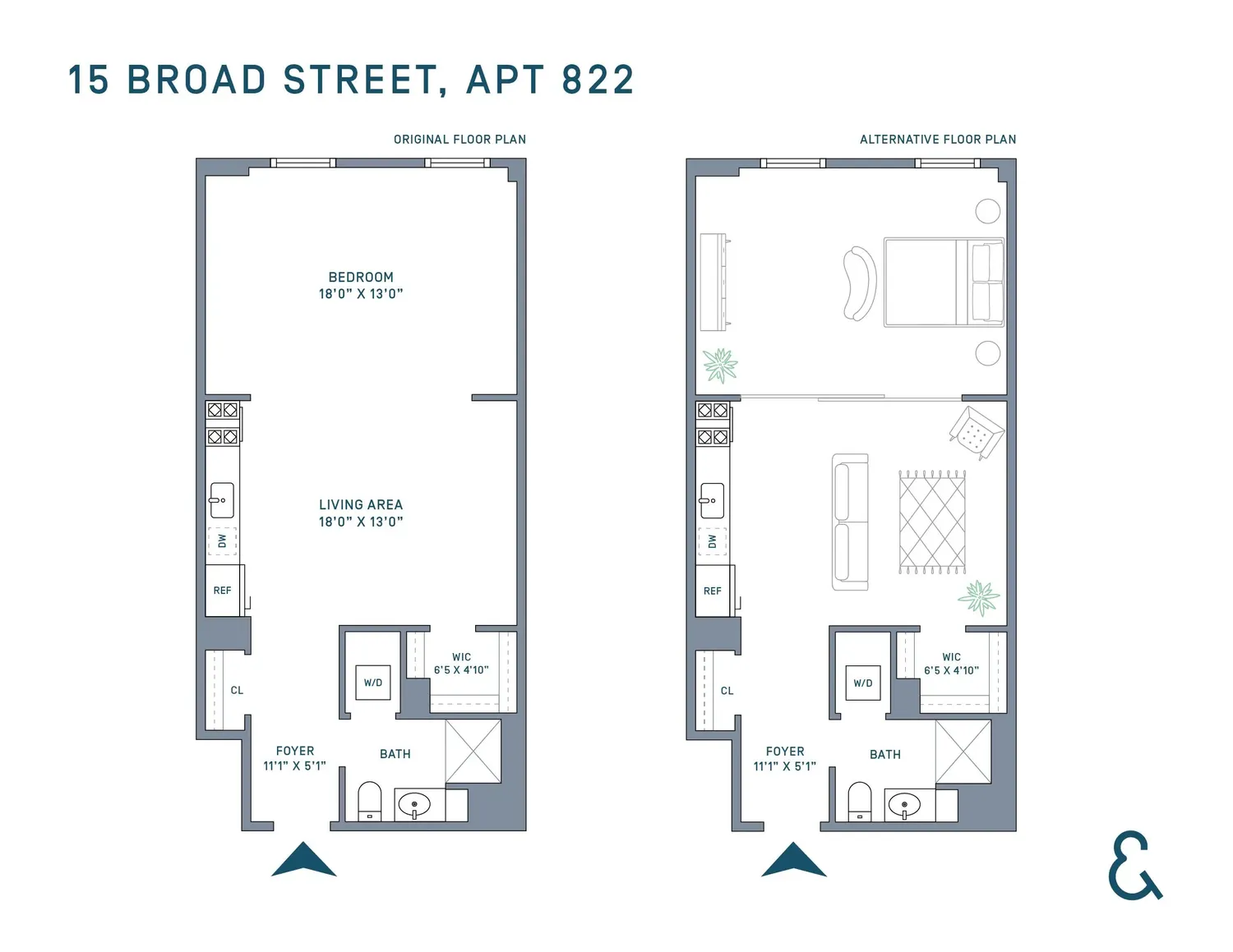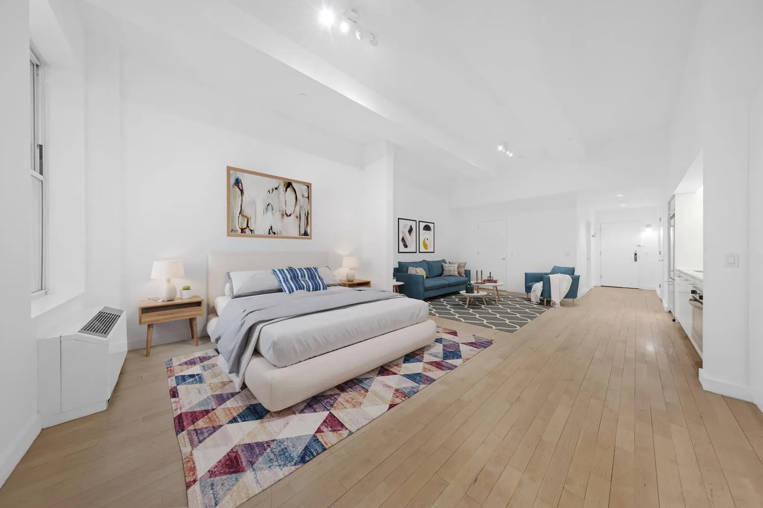 Apt. 822, measuring more than 700 Square feet, features soaring ceilings, oversized windows, and an open, efficient layout that maximizes space and natural light. The kitchen is appointed with sleek cabinetry, stone countertops, and stainless steel appliances, while the bathroom offers a spa-like feel. Hardwood floors and ample closet space complete the residence.