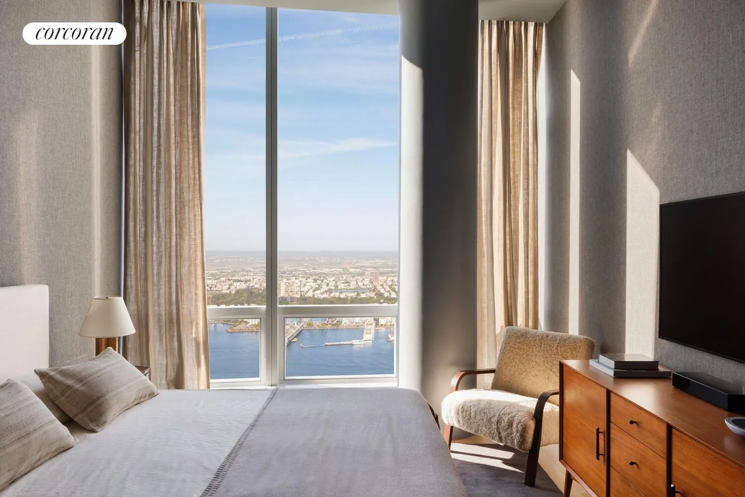 A floating white oak staircase with brass accents leads to the 89th floor, where a refined sitting area overlooks the great room below. The primary suite is a sanctuary of comfort, offering dual spa-like baths and two custom-designed dressing rooms by The Closet Company . Three additional en-suite bedrooms ensure both privacy and ease, while a private elevator, finished linen closet, utility room with washer/dryer, and dedicated service entrance complete the thoughtful layout.