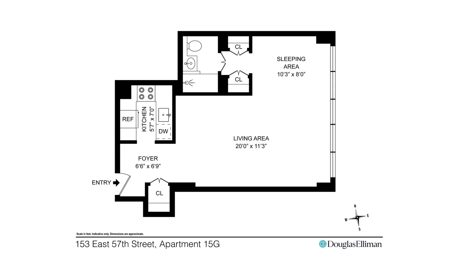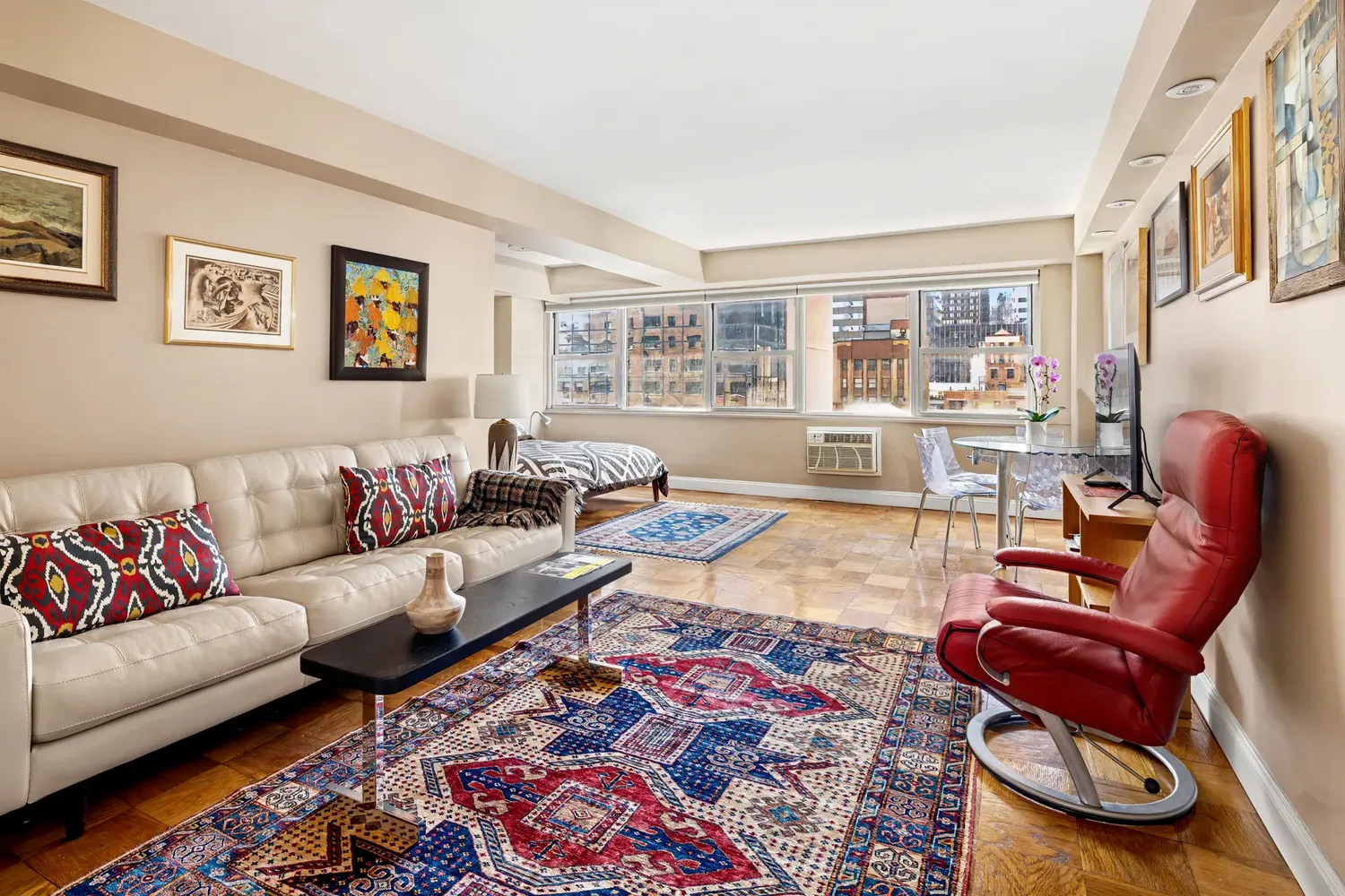 This bright and airy residence offers an open concept sunny space with windows that span the entire south wall of the apartment, flooding the studio with great natural light.