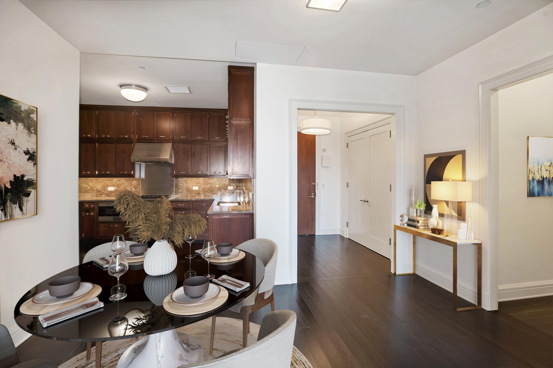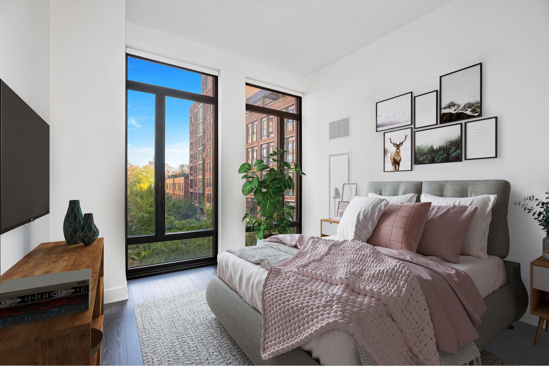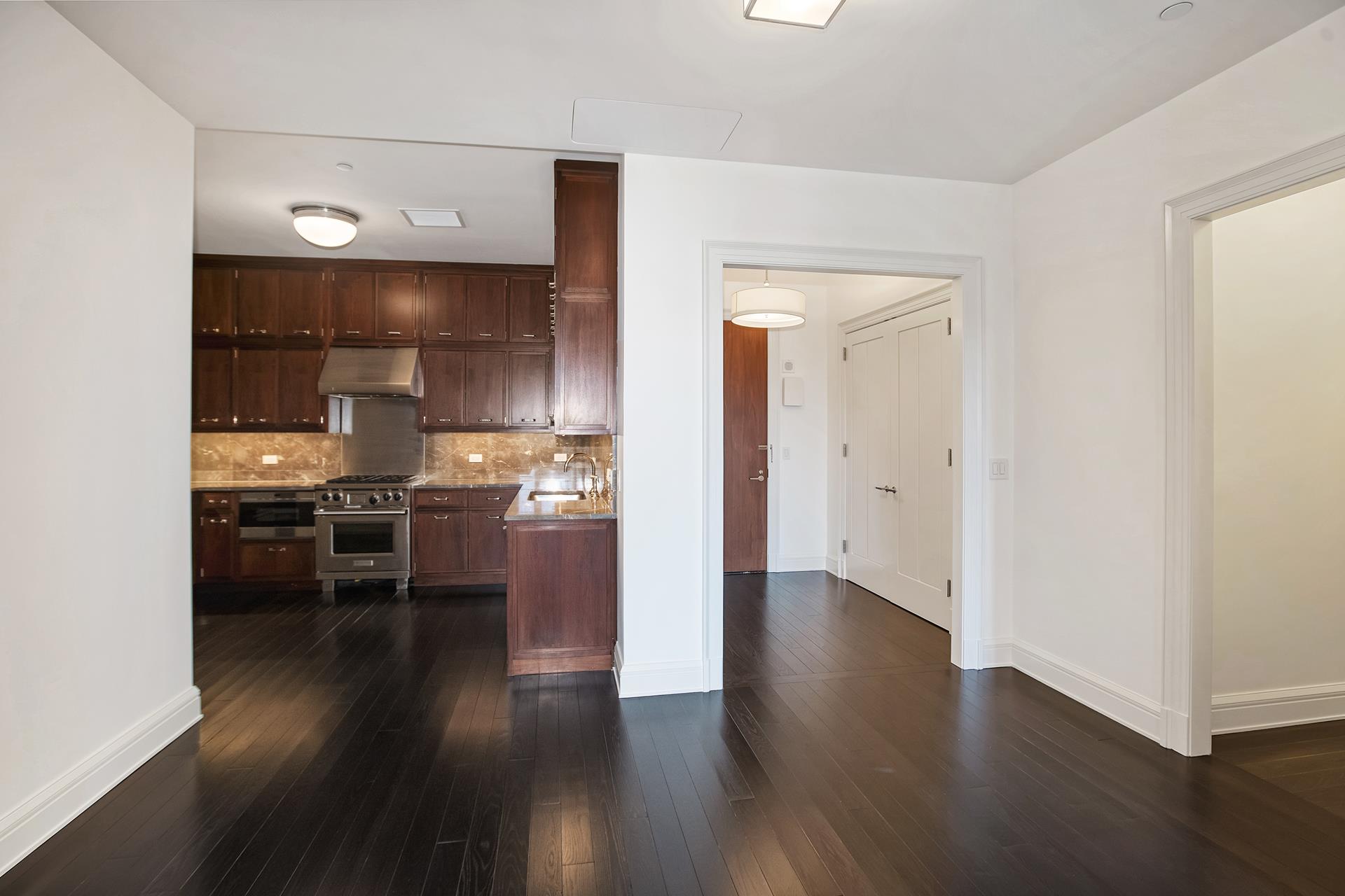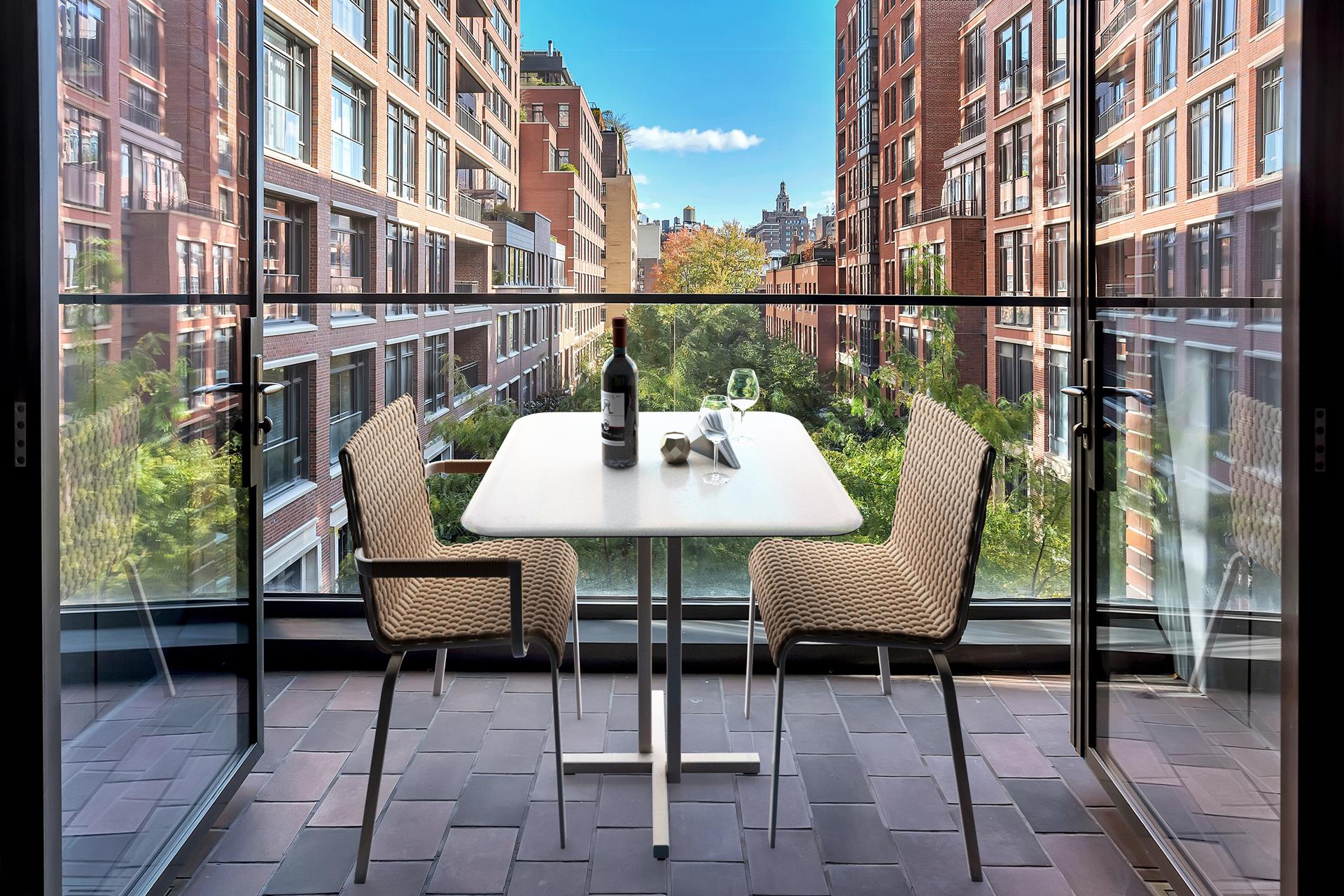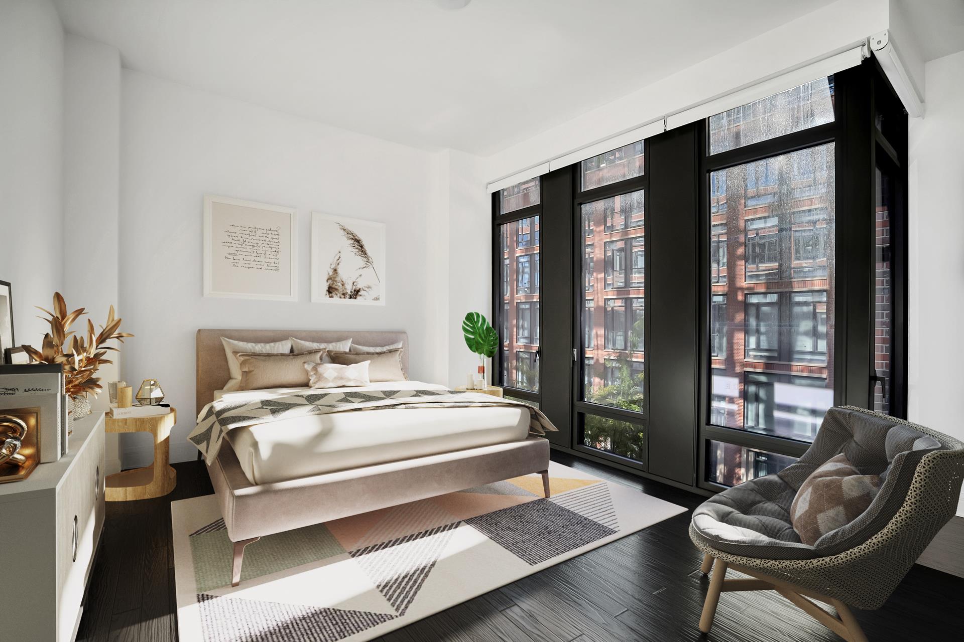 Sunlit, well proportioned 2 bedroom, 2.5 bathroom residence with double door private balcony overlooking a serene garden. Every room features floor to ceiling glass windows with customized automated shades. Open chefs kitchen with custom-paneled cabinetry complemented by veined grey marble counter top and back splash. Fully equipped kitchen with Sub-Zero, Wolf, and Miele appliances. The Master suite features floor-to-ceiling glass windows with southern and eastern exposure. En-suite master bathroom fully clad in white and grey marble on the walls, flooring, and surrounding the tub, appointed with a fine custom millwork vanity, marble floor with mosaic detailing, glass-enclosed shower, and electric radiant heated floors. The secondary bedroom includes two large windows with views over the garden and an en-suite bathroom with fine marble detailing. Additional residence features include: powder room, custom lighting, LG washer dryer, and four-pipe HVAC system with zoned climate control. ***Showing by appointment. NO FEE